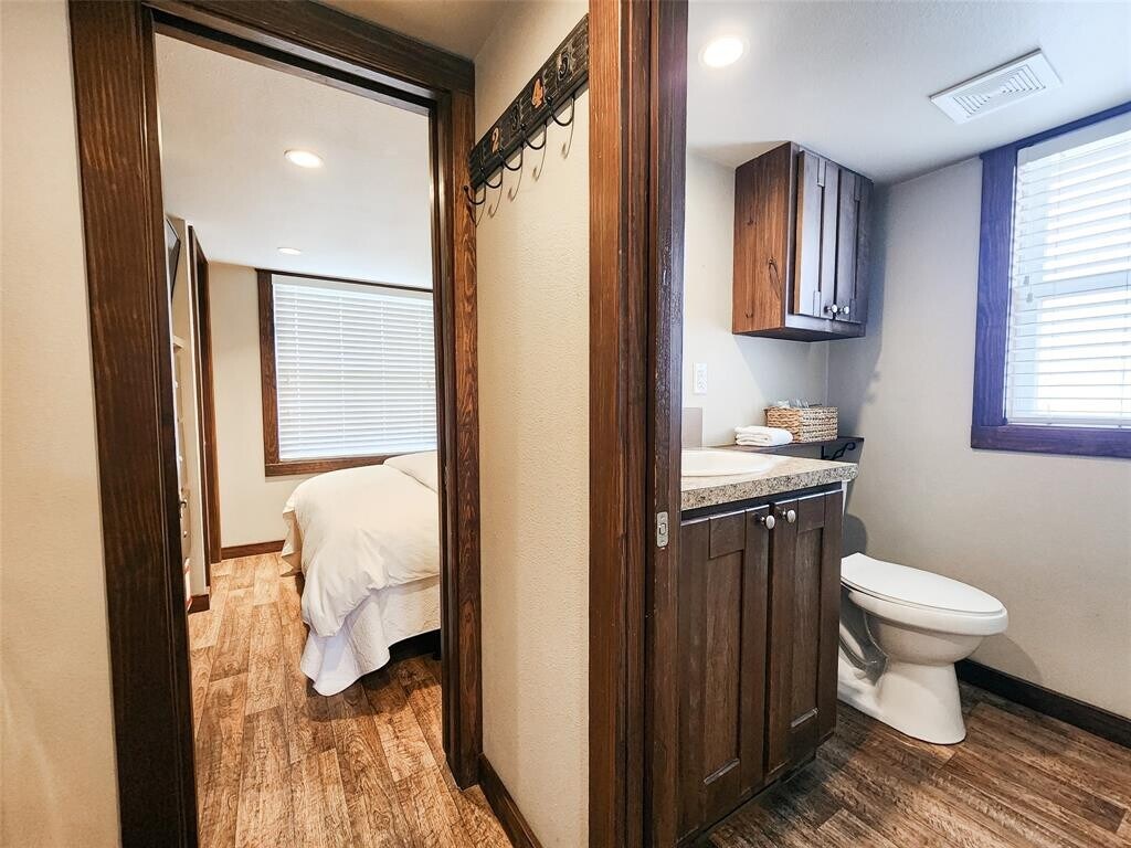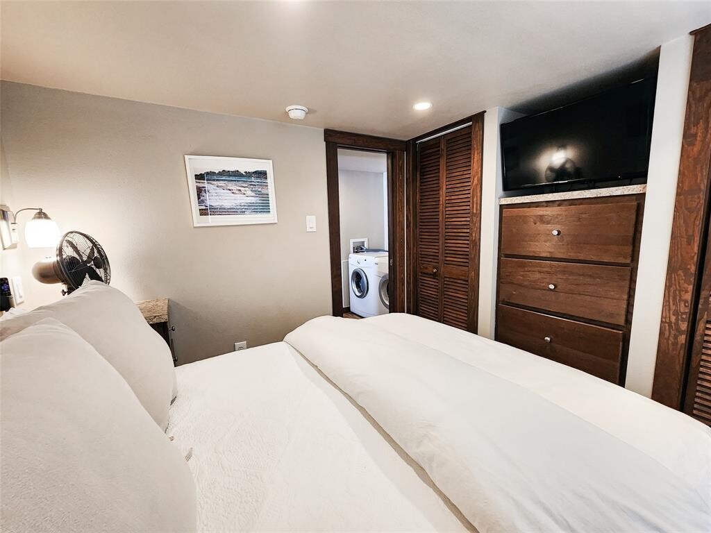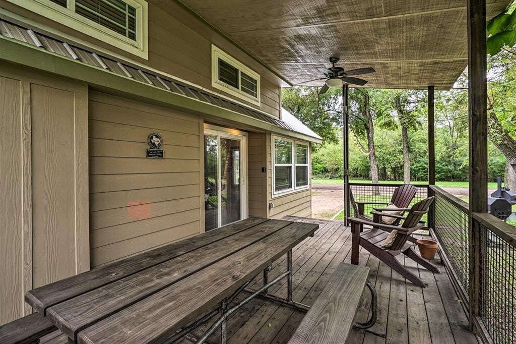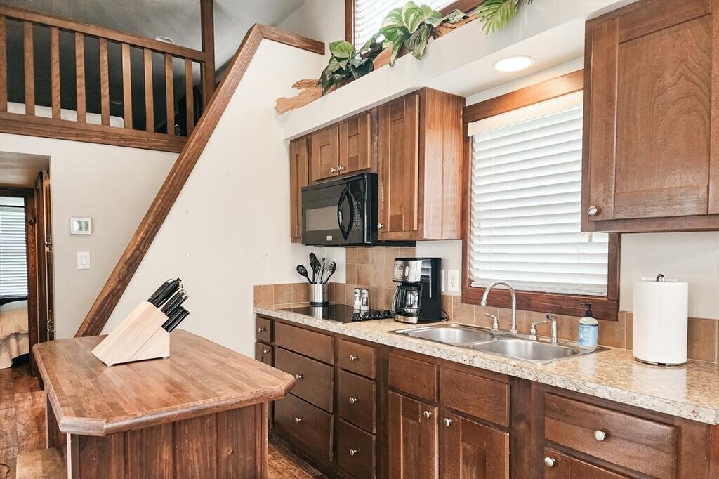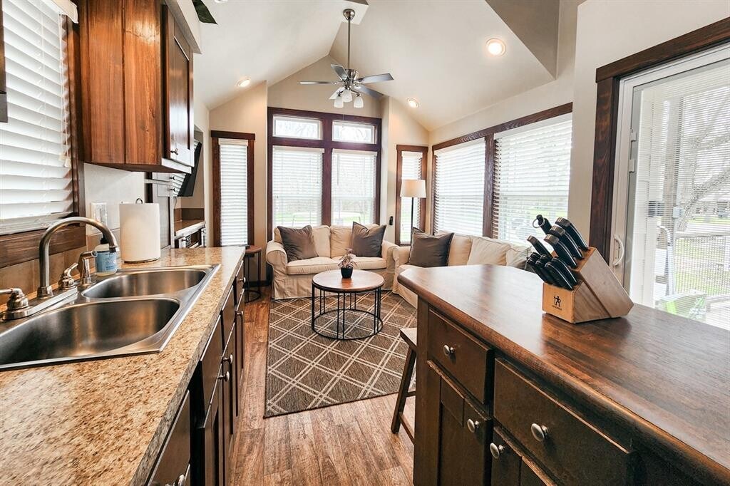 ALL UTILITIES INCLUDED, FULLY FURNISHED! Discover big charm in a small package! This beautifully designed tiny home in Staples, TX is fully furnished, fully equipped, and ready for move-in. The layout features a comfortable primary bedroom on the main floor plus a spacious loft outfitted for guests with two queen-size beds already in place. The living room boasts high vaulted ceilings, a ceiling fan, and recessed lighting throughout, creating a bright and inviting atmosphere. The kitchen includes a convenient island that doubles as a breakfast bar, a full-size refrigerator, electric stovetop, and microwave—everything you need to whip up your favorite meals. A washer and dryer are also included in-unit for added ease. All utilities are covered, making this an effortless, move-in-ready home. Nestled near the San Marcos River, this property offers a peaceful escape overflowing with small-town charm, while still providing quick access to San Marcos and New Braunfels for shopping, dining, and outdoor adventures. Turnkey living meets Texas Hill Country charm—schedule your showing via ShowingTime today!