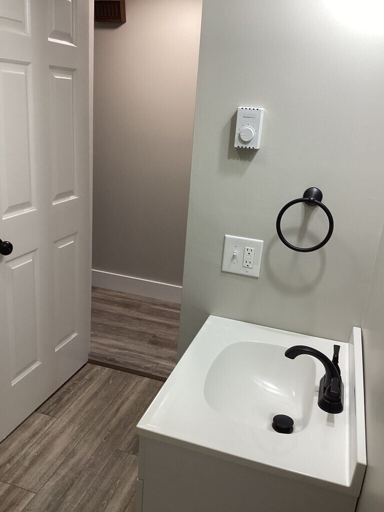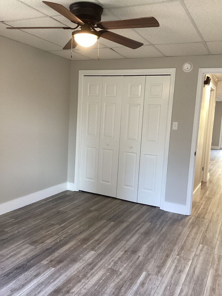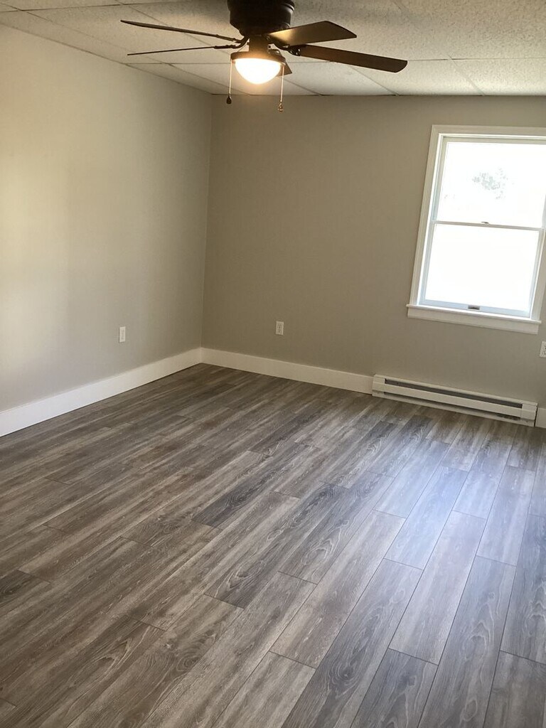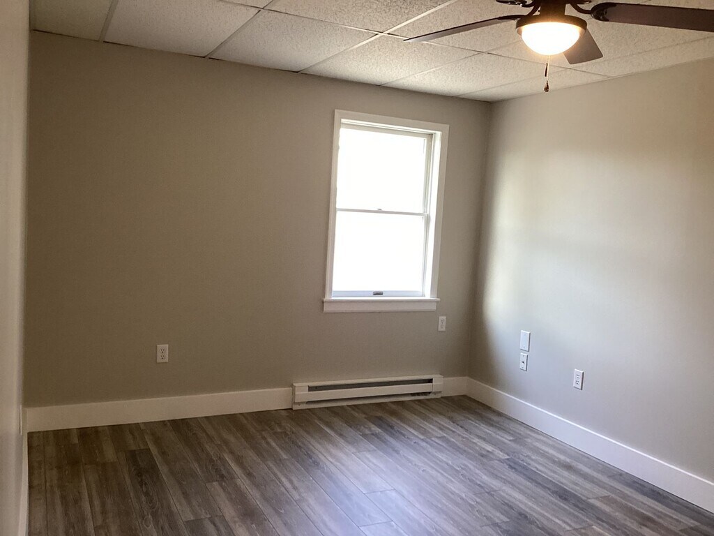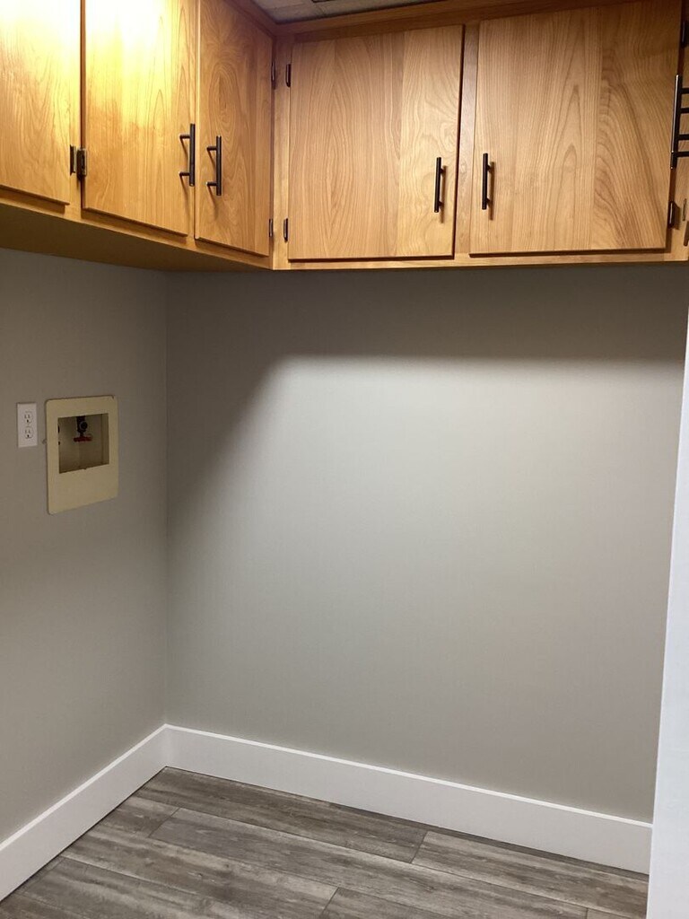 Open concept Living-Dining- Kitchen floor plan Equipped Kitchen with lots of cabinets Two spacious bedrooms with ample storage Laundry room with Washer/Dryer hookups in unit. Recent updates include new solid floors, light fixtures, bathroom update, and fresh paint throughout. Off-street parking. Electric baseboard heat, built-in A/C unit in living room. Balcony/Deck and beautiful common outdoor spaces Tenant pays for all utilities. ONE Small dog or cat ok with additional fees. No large dogs.