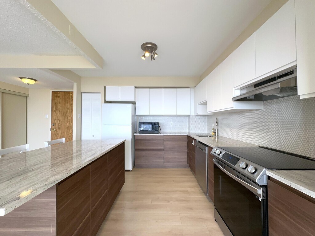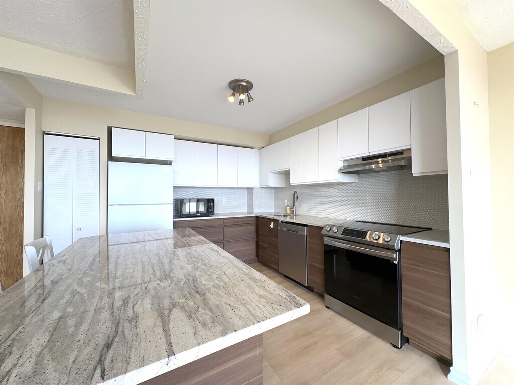 This beautifully updated 2 bed, 2 bath apartment in the sought-after Atrium I condominium offers a bright south-facing layout with modern style and everyday comfort. The thoughtful renovations create a space that feels fresh, warm, and easy to enjoy. The kitchen blends function and design with quality cabinets, quartz countertops, and a clean ceramic backsplash. It opens to a spacious living and dining area filled with natural light. Soft ambient lighting adds a calm touch and helps set the mood whether you are relaxing at home or hosting friends. Both bedrooms are well sized. The primary bedroom features a fully renovated 3-piece ensuite and convenient walk-through double closets. A second full bathroom adds flexibility for guests or shared living. Residents appreciate a strong mix of amenities, including an outdoor pool, squash courts, a sauna, party room, and guest suite. The location near Southkeys shopping and reliable transit makes daily errands simple and commuting smooth. This inviting apartment offers comfort, style, and convenience in a well-managed community. It is ready for you to move in and enjoy.