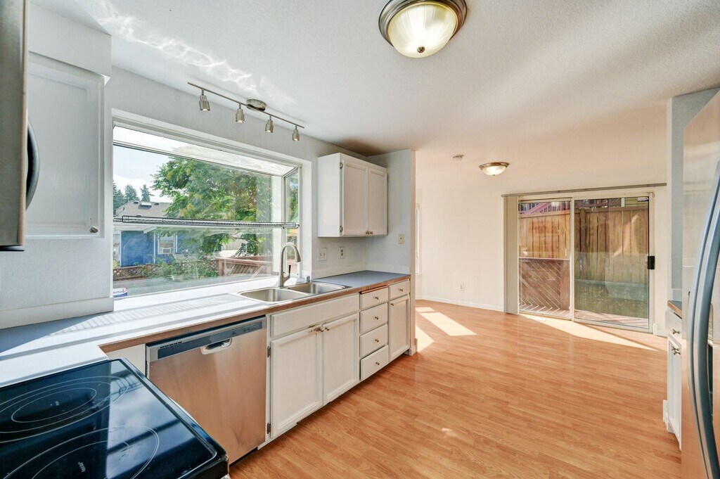 The main floor boasts a spacious living room with vaulted ceilings, and adjoining dining room- ideal for entertaining. Kitchen has SS appliances, sink, large garden window, and eat- in space. The light filled primary bedroom with ensuite bath and adjoining walk in closet is a perfect retreat. New Carpet and natural light throughout. Perfect spot for Pacific Northwest summer evenings! Desirable location, minutes to I-5, Hwy 99 and the new light rail station. ***Gas fireplace is not functional at this time*** Non-refundable Carpet Cleaning Fee of $350 Due at Move In. Non Refundable Admin Fee of $100 Due at Move in. #2141