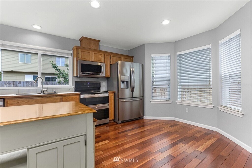 You absolutely cannot beat this location! Short walking distance to top rated Glacier Park Elementary, Tahoma High School, Summit Park, walking/biking trails & local restaurants/shopping. This home is full of smart upgrades and pride in ownership abounds. All bathrooms updated w/ quartz countertops, Kohler sinks/toilets, custom Kemper cabinets, LED fixtures & flooring. All SS appliances stay including new Frigidaire Gallery fridge. Gleaming solid Kempas hardwood flooring on main floor. Spacious mstr bedroom with en-suite 5 pc bath & walk-in closet. 4 bedrooms! Huge 3 car garage w/ tall ceiling, attic & tons of storage space. Fully fenced level backyard w/ample planting/garden space