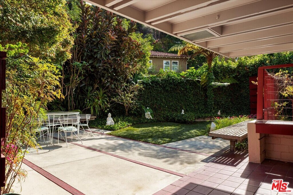 Designed in 1941 by modernist master R.M. Schindler, the Druckman Residence is a rare example of his late-period work in the Hollywood Hills. Conceived for Dr. Jacob S. Druckman and his wife, artist Margaret Druckman, the home features Schindler's distinctly asymmetrical gabled roof--concealing the house from the street while maximizing canyon views and light through dramatic clerestory windows. The residence balances openness with intimacy through Schindler's clever, split-level floor plan that separates the expansive public rooms from the private bedroom wing, creating both intimacy and privacy. The main living room is anchored by a dual indoor-outdoor fireplace, extending the interior seamlessly onto the front patio and reinforcing the home's early commitment to indoor-outdoor living. The adjacent kitchen preserves Schindler's original built-in breakfast nook, paired with updated appliances and surfaces in the spirit of the original design. A den beside the living area offers a quieter retreat with treetop views and sculptural ceiling lines. Down the split-level corridor, four bedrooms maintain a more intimate scale, adding to the home's overall efficiency. The value focus of the mid century movement is more relevant and important today with increased cost of living and ever increasing utility costs. Each is positioned to maximize natural light and connection to the outdoors. The primary suite includes canyon views, generous closet, and a recently updated en-suite bath, while the additional guest rooms also feature original built-ins and backyard access. Outside, newly terraced landscaping leads to a private oval pool--attributed to Richard Neutra. 2764 Outpost Drive is a rare architectural offering, combining architectural significance with everyday livability, one with a deep connection to light and landscape. Fully furnished. MLS ID 26791191