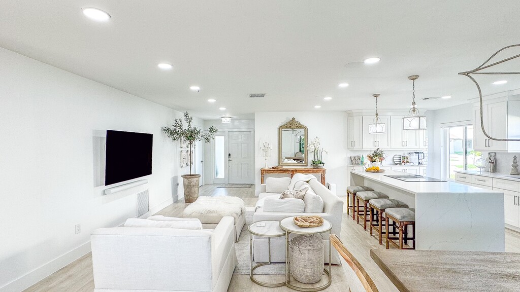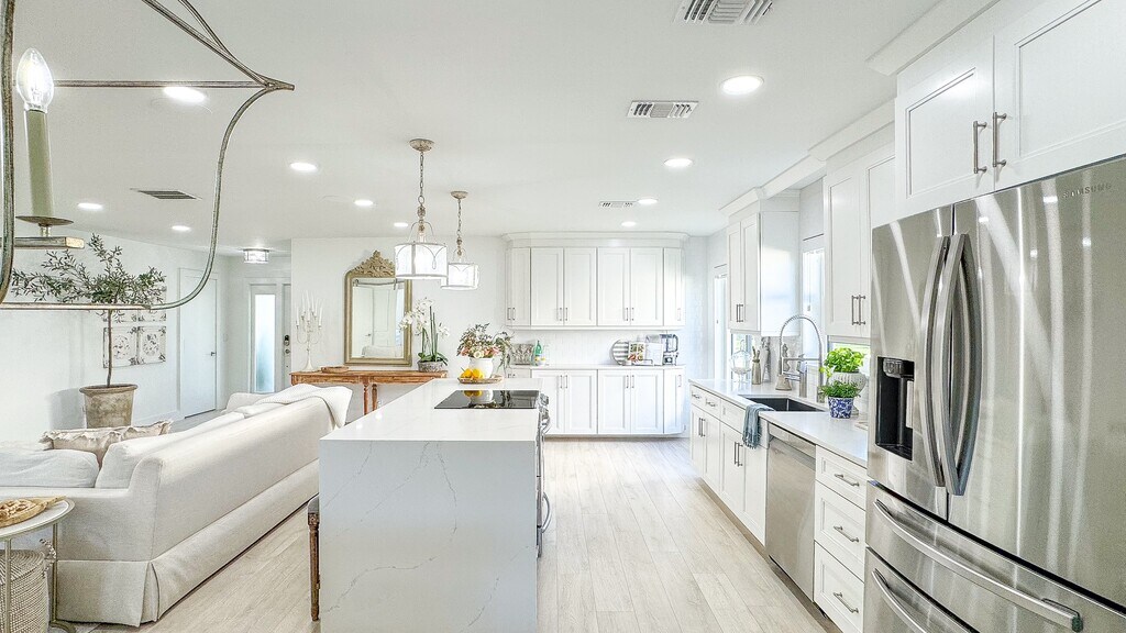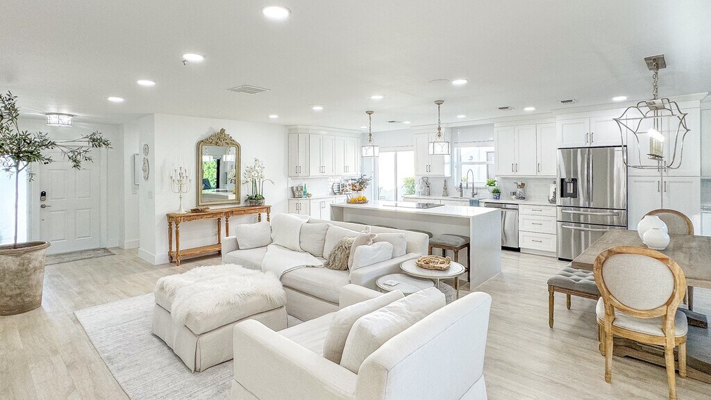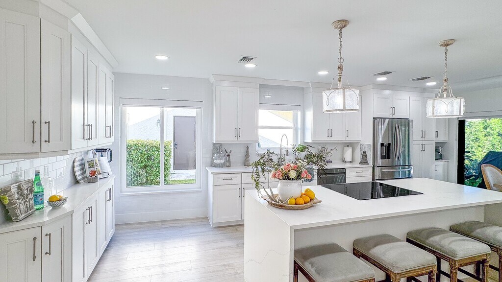 Located in the picturesque surroundings of Delray Beach, just moments from the sun-kissed beaches, this luxurious modern cottage represents the pinnacle of coastal living. Situated within a peaceful, family-friendly neighborhood known for its exceptional community spirit, residents are a mere 7 minutes from the beach and 5 minutes from Whole Foods, Target, Traders Joes, offering a perfect blend of seaside tranquility and convenience. This three-bedroom, two-bathroom gem underwent a comprehensive renovation in 2020, transforming it into a haven of elegance and modern functionality. The upgrade encompassed a new roof, full-impact windows, doors, sliders, and garage door, ensuring safety and peace of mind. The driveway was thoughtfully expanded to accommodate additional parking needs. Inside, the home boasts a wealth of luxurious features. The entire residence is equipped with a top-of-the-line water filtration system that includes UV light, ensuring the purity and safety of your water. The bathrooms exude sophistication with marble finishes, soaker tub, and high-quality Toto toilets, while storage solutions are abundant throughout, with every closet outfitted with white shelves and drawers for optimal organization. Technological enhancements are seamlessly integrated for ultimate comfort and convenience. The home is a smart-enabled sanctuary, with automatic white blackout window shades for privacy, Lutron-controlled lighting, and an immersive Sonos ceiling speaker and surround sound system throughout. The kitchen is a culinary delight, highlighted by a 12-foot waterfall island with seating for four, stainless steel appliances, a spacious pantry, and a chic coffee/wine bar. An additional room (3rd bedroom) offers flexibility as an office, nursery, sunroom, or additional dining space, complemented by extensive attic storage. Offered fully furnished for turnkey annual leases (at a different price) or unfurnished, this property caters to a range of lifestyle preferences. While initial pictures from 2020 showcased its foundational beauty, the home has since been further embellished and decorated, capturing the essence of modern beach cottage aesthetics. The allure of this property extends to its outdoor living spaces. The yard is a masterpiece of design, featuring an 18 ft privacy hedge in the backyard, adorned with elegant strung white lights and a 30 ft concrete patio, creating an enchanting outdoor retreat. The landscaping is meticulously crafted, with LED solar lighting illuminating the front and backyards, enhancing the home's natural beauty and charm. The community is pet-friendly, allowing one pet however ESAs and service animals are welcomed, HOA says no to trucks and motorcycles. This property presents a unique opportunity to indulge in a lifestyle of luxury, comfort, and community, set against the backdrop of Delray Beach's captivating coastal landscape. Move-in Requirements: First, Last & Security, Rent Spree, Copies of IDs and Proof of Income Refundable Pet Fee $500