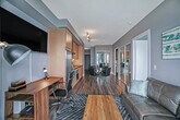 Experience the vibrant heart of Downtown Toronto with this modern 1-bedroom suite located at 300 Front St W. Situated on a high floor, this apartment offers a balcony with stunning city and lake views, making it the perfect urban retreat. Feel at home with a separate bedroom featuring a queen bed and a walk-in closet. The apartment boasts a fully equipped kitchen, ideal for preparing your favorite meals, and an in-unit laundry for your convenience. Relax in the living area with a 50" Smart TV, or take advantage of the workspace complete with a desk and chair. High-speed 2 Gbps fibre internet ensures seamless connectivity for all your needs. Residents can enjoy access to a well equipped gym and a rooftop pool, perfect for unwinding after a busy day. Nestled in a prime location, this apartment provides easy access to Toronto's bustling downtown attractions. Enjoy the convenience of having a Starbucks and South Street Burger on-site, and explore the city's vibrant culture and entertainment options just steps away. This property requires a minimum stay of 30 nights. A laptop computer is not included. The apartment includes a dedicated workspace with a desk and chair, complemented by high-speed 2 Gbps fibre internet, making it ideal for remote work. [SI]
