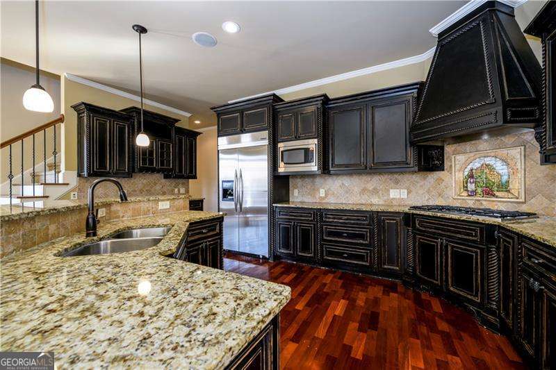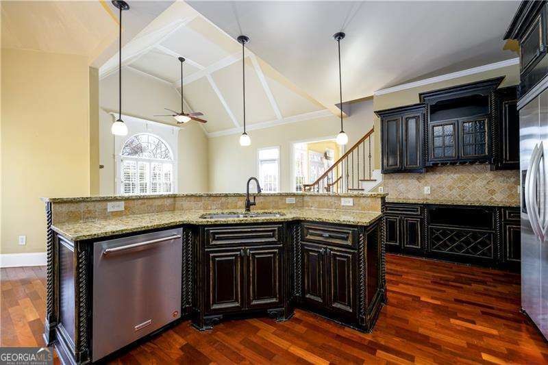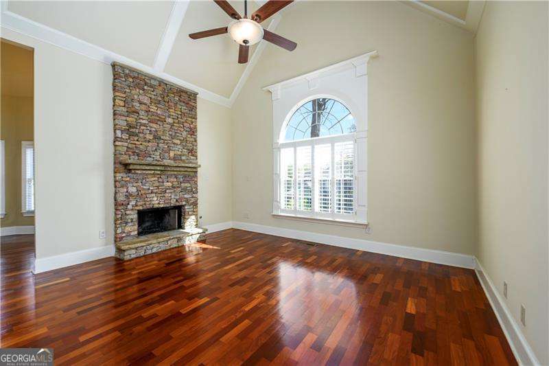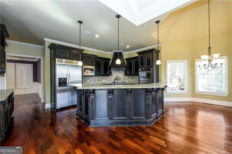 This elegant, expansive property is located in the Chateau Elan gated golf course community which features miles of golf cart/riding/walking paths both inside and outside gates and provides access to local restaurants and shops. Inside the gates are three 18 hole golf courses and a Par 3 course. The home has 3 living levels and is positioned on a culdesac. The main level offers an eat-in breakfast area, eat-in kitchen island, adjoining family room, a bedroom/full bath, living room with fireplace, formal dining and study. The spacious main bedroom suite is located on the upper level and has a separate sitting area, large ensuite bath including a shower, soaking tub and double vanities. The walk-in closet accommodates a second washer/dryer. The primary bedroom suite shares the upper floor with 3 additional bedrooms and 2 baths. A wet bar, second family room with fireplace, rec room, media room, wine storage, office, bedroom and bath are located on the terrace level. The basement provides ample storage with a walkout covered porch. Attached is a side entry 3 car garage. The property is agent owned.