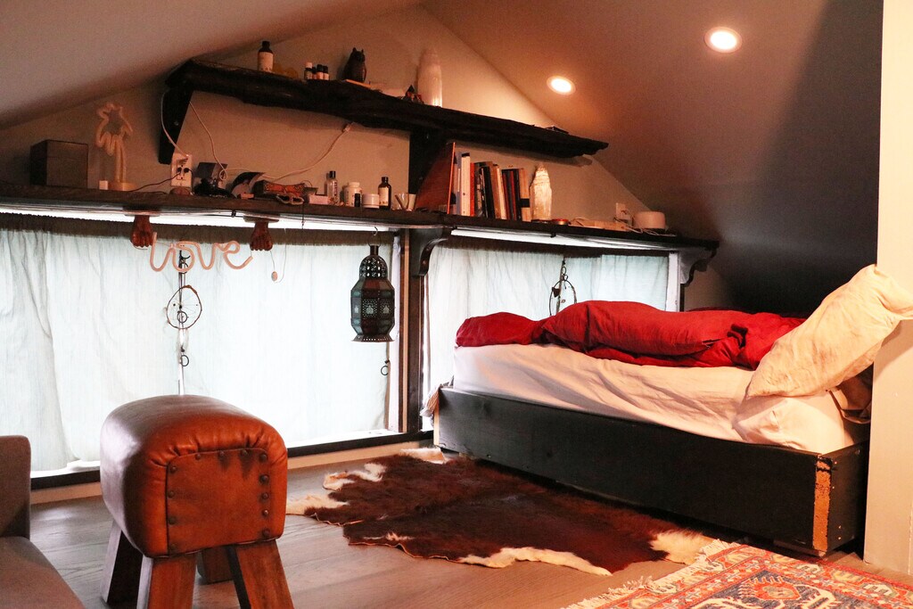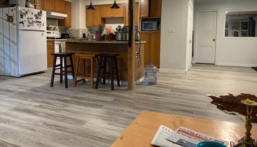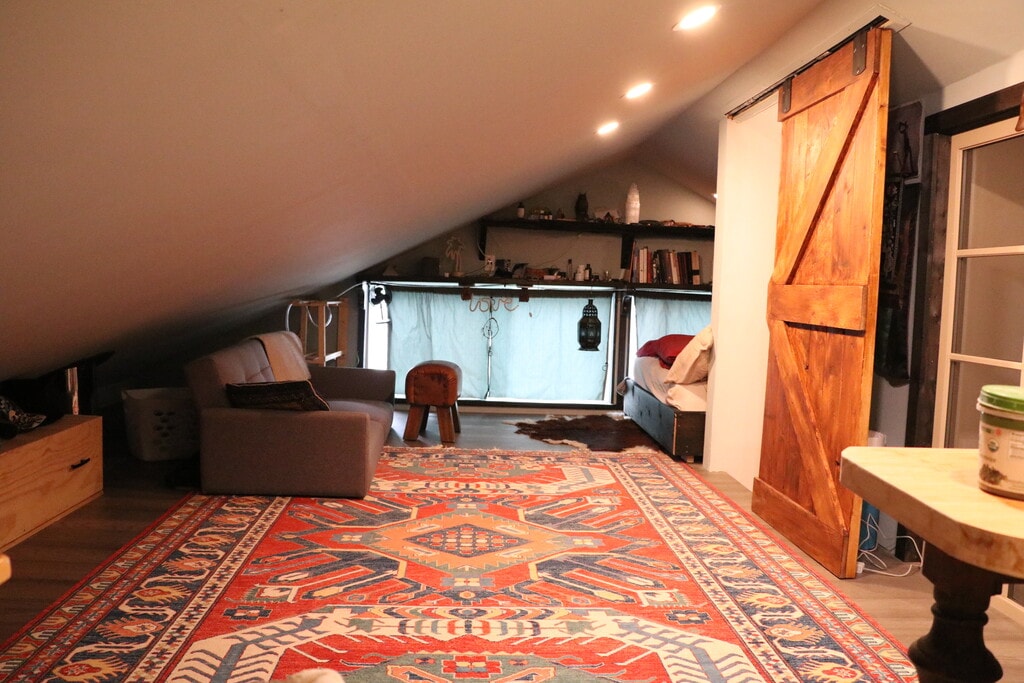 Bedroom with a large closet in a shared and friendly household. house is on a quiet residential street close to trails and elk falls park. large yard with many fruit trees.