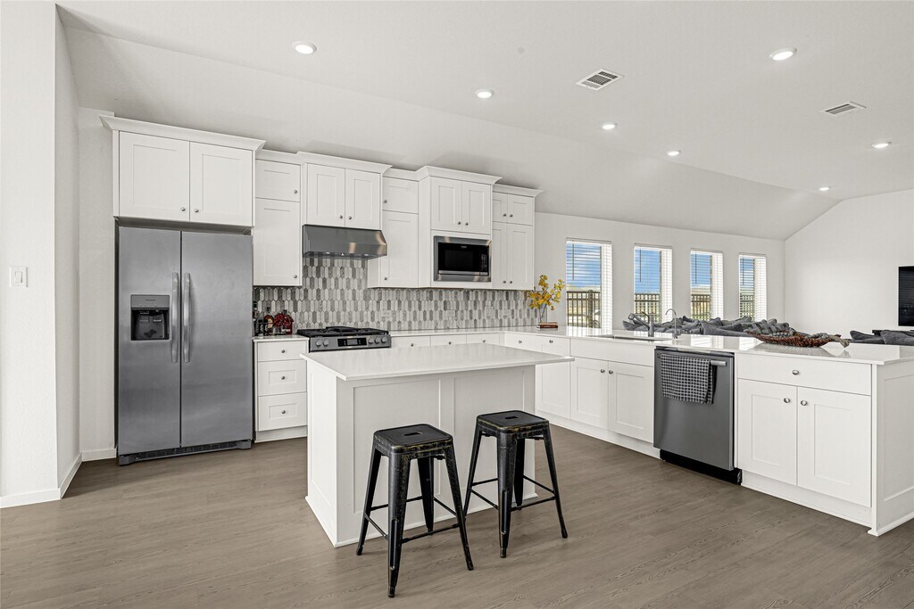 This charming 3-bedroom home in a highly desirable neighborhood offers a spacious layout with modern upgrades and home includes a water softener. The open-concept kitchen features stainless steel appliances,quartz countertops,abundant cabinet storage,and an extended oversized counter perfect for meal prep or casual dining. Durable vinyl flooring flows through the main living areas,creating a warm and inviting atmosphere. The backyard is ideal for entertaining,complete with a beautiful lake view,water fountain and lush landscaping that provides a peaceful outdoor retreat. Conveniently located near top-rated schools and popular shopping destinations,this property is perfect for families seeking both comfort and style. Home is leased with all appliances,including a water softener. Contact me for more information about this fantastic opportunity! MLS# 74735967