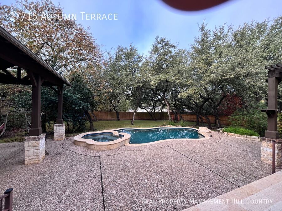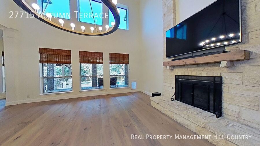 Rare opportunity to lease a 6,443 sq ft luxury residence in Limestone Ranch, offering an exceptional combination of space, thoughtful design, and everyday livability. This five-bedroom, four-and-a-half-bath home is well suited for both comfortable daily living and large-scale entertaining, all at a price rarely seen for a home of this caliber. The main level features a private primary suite with fireplace and spa-style bath complete with steam shower and two walk-in closets, a formal parlor off the entry foyer, and a flexible study or music room with French doors. The expansive family room opens seamlessly to the chef’s kitchen, where two oversized islands, double ovens, gas cooking, high-end appliances, a walk-in pantry, and a butler’s nook connecting to the formal dining room create an ideal setting for gatherings. Walls of windows overlook the backyard and outdoor living areas, filling the space with natural light. Upstairs offers outstanding versatility. Spacious loft living area, a quiet reading nook, a fully equipped media room with seating and screen, and an additional pocket office off the second-floor landing. Four generously sized bedrooms are located on the upper level, all with walk-in closets. Two bedrooms share a Jack-and-Jill bath with separate vanities, while the remaining bedrooms enjoy their own dedicated bathrooms. Outdoor living is a highlight of this home, featuring a heated pool and spa, an extended covered patio with furnishings, and a private backyard designed for both relaxation and entertaining. Additional home features include two staircases, a mudroom off the garage entry, abundant storage throughout, an extended driveway, a two-car garage plus a separate one-car garage, and an extra refrigerator located in the laundry room. Located in the Limestone Ranch community with access to a neighborhood park and within highly sought-after Boerne ISD, this property presents a rare opportunity to lease a truly exceptional home. A two-year lease is preferred. Reach out for more information today! Community Playground Extended Covered Patio Hoa Dues Pool Pool Service