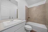 Beautiful new construction home is move in ready for the first tenant! Wonderful layout has 4 bedrooms and 2 baths with primary split from the other bedrooms for privacy. The large family room is open to the kitchen which has a terrific island with quartz counter tops. Pull up stools for casual dining or keeping the cook company. Stainless appliances with gas cooking are a plus with tons of cabinet space for storage. Laundry room is tucked away behind the kitchen and the fridge/washer/dryer are included for convenience! Primary bedroom is a terrific size and will hold all your large furniture. Ensuite bath has large walk in shower and double sinks. You'll love the huge primary closet to! Out back is a covered patio to relax and enjoy the cooler weather. And plenty of yard space for the kids and pets. Community has resort style amenities with pool,splash pad,soccer fields,tennis courts & more. Sunterra has something for everyone and is close to I99 and I10 with excellent Katy schools MLS# 29030713