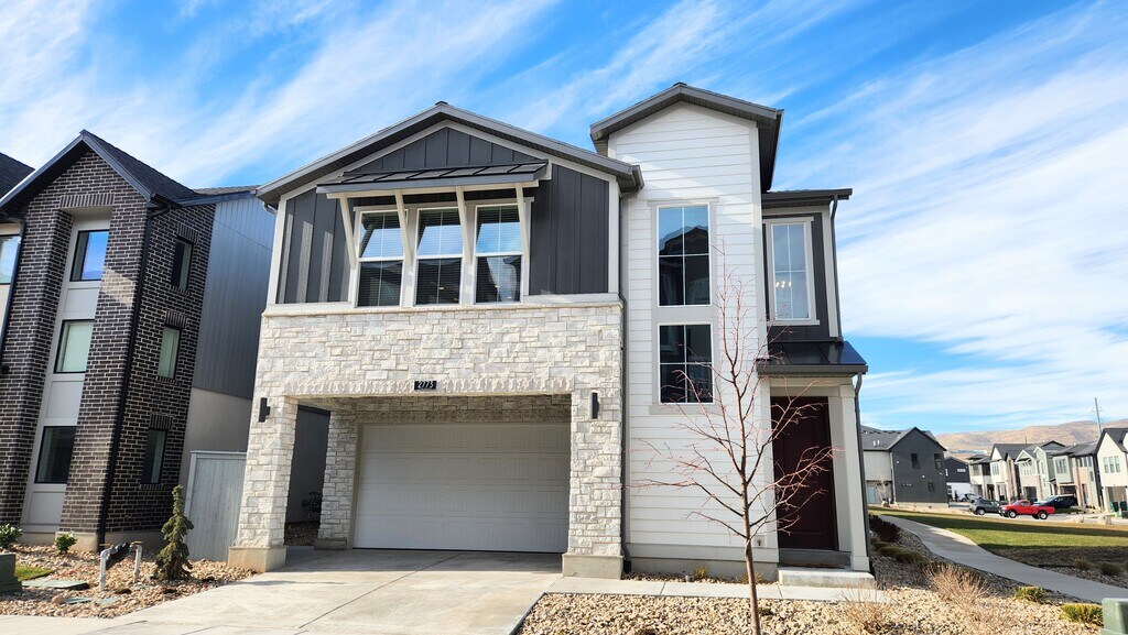 Welcome to this stunning 3-bedroom, 3-bathroom, attached 2-car-garage, single-family home in the desirable Holbrook Farms community in Lehi! On the main level, you'll find a convenient bedroom with its own en-suite full bathroom. Upstairs, the open living and dining areas flows seamlessly into an updated kitchen with stainless steel appliances, all enhanced by natural light from abundant windows and gorgeous hardwood flooring. The second floor also has a spacious master suite with a walk-in closet and private en-suite bathroom. The same floor has an additional bedroom, full bathroom, and a conveniently located laundry room equipped with a modern washer and dryer. The basement provides flexible space perfect for a home gym or extra storage. Outside, enjoy a private backyard ideal for BBQ or relaxing, with the home situated directly adjacent to a beautiful park boasting expansive open space. Just a short walk away, Holbrook Farms Park provides even more recreation with pickleball courts, a playground, picnic tables, and plenty of trails. As an added bonus, the owner covers HOA fees that include professional maintenance of both front and back yards, ensuring a truly low-maintenance lifestyle. Conveniently located just minutes from entertainment, shopping, and restaurants in the area, this move-in-ready home blends comfort, convenience, and community amenities - schedule your tour today! No pets. No smoking/vaping. 6-month initial lease with subsequent 12-month renewals.