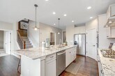 Beautiful home in Ann Arbor featuring an open floor plan with two bedrooms and two full bathrooms on the main floor offering the ease of ranch-style living. The bright living room boasts lovely double windows and a cozy corner fireplace,while the dining area opens to a private balcony through double doors. Hardwood floors flow through the main living spaces,with clean carpet in the bedrooms. The kitchen is a chef's dream with a large island,stainless steel appliances,and a walk-in pantry. The first-floor primary suite includes a tray ceiling with recessed lighting,three large windows for abundant natural light,and a generous en-suite bath with dual vanities,a walk-in shower,private toilet room,and spacious walk-in closet.