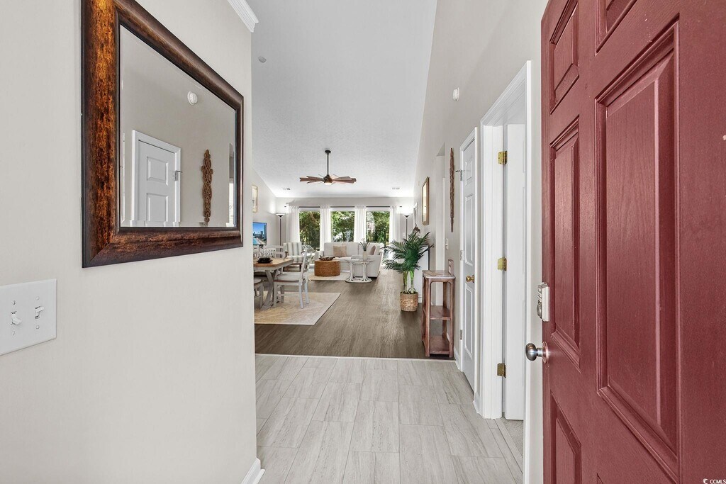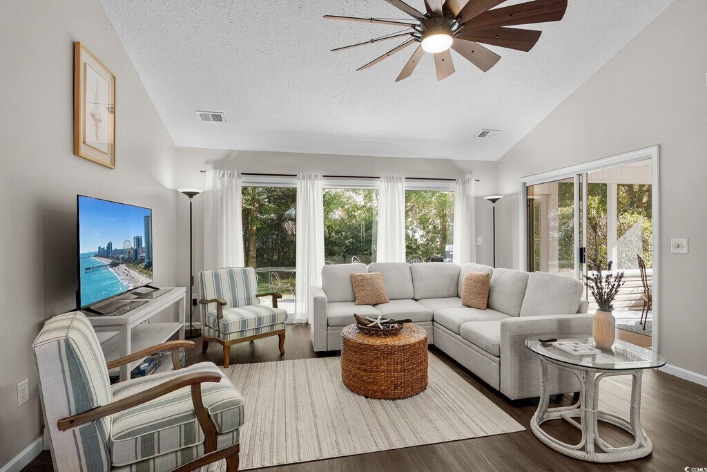 Welcome home to the Sanctuary at Wild Wing Plantation! Available as an annual rental now,this gorgeous home is MOVE IN READY! The owners have put so much thought into making this a "turn key" long term rental property for your convenience and comfort. This home has been newly and tastefully furnished with beautiful furniture,decor,functional kitchenware,lawn equipment and so much more! With a nice long driveway and a side load 2 car garage,you have plenty of parking for you and your guests alike. Upon entry,you will immediately notice the lovely vaulted ceilings as well as the split bedroom and open floor plan. This home provides privacy for all yet offers a great gathering space in the main living area. The spacious eat in kitchen features quartz countertops,SS appliances,a breakfast bar and a pantry. Off the kitchen you will find the separate laundry room with washer/dryer and tons of storage. The kitchen overlooks the main dining and living areas. Off the living room you have a large screened in porch which leads to a private patio. The owners have furnished both the porch and the patio and included a brand new grill. The primary bedroom boasts a king size,tempur-pedic adjustable mattress,nightstands,dresser and armoire. Enjoy the relaxing en-suite with double vanity,soaking tub,walk in shower and walk in closet. There are 2 other bedrooms,a full hall bath with shower/tub combo and an amazing bonus room. This upstairs bonus room provides so many options including a place to relax and "watch the game",read in a quiet serene space or utilize the functional work space. Living in The Sanctuary at Wild Wing Plantation gives you access to resort style amenities including a clubhouse,pool,pickleball courts and scenic walking paths. Rent includes internet and trash. Pets will be considered. NO smoking in house or garage. Serious inquiries only. Schedule your showing today!
