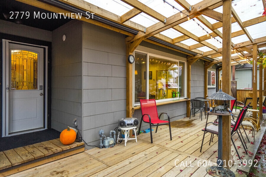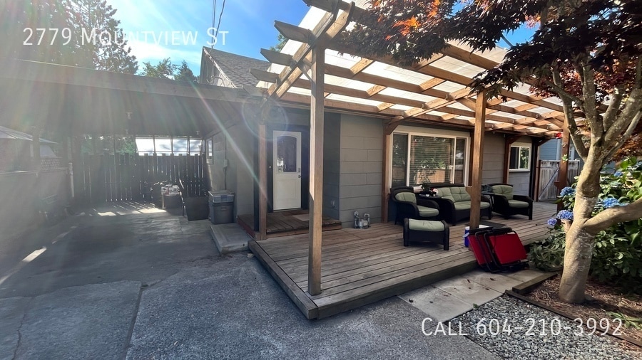 One Year Lease Required Security Deposit: Half Month Rent Pet Deposit: Half Month Rent Delightful 2 bed + den, 2 bath rancher/bungalow styled home. Pleasant amount of natural lighting in the bedrooms, exposed brick chimney + shiplap walls. Nicely fenced yard with covered decks front and back, enjoy beautiful mountain views from the kitchen, Mount Baker + Golden Ears from your street. Please call Ace Property Management at - Ext-1 to book a viewing. Reference the address: "2779 Mountview St, Abbotsford"