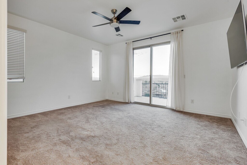 Welcome to your dream home located in the prestigious guard-gated community of Tuscany in Henderson! This stunning two-story residence offers luxury, comfort, and a plethora of modern amenities. The home features 3 spacious bedrooms and 2.5 elegantly designed bathrooms, perfect for a large family or guests. The chef's kitchen is a delight with dark wood cabinetry, granite countertops, stainless steel appliances, and a central island, complete with a butler's pantry and wine storage area. The open and airy living space boasts wood-like flooring, ceiling fans, and ample natural light, leading to a stylish staircase with black railings. Relax in your private backyard oasis featuring a hot tub, stone and grass pavers, and stunning views of the surrounding Strip, mountains and neighborhood, enclosed by a wrought iron fence and a partial brick wall for added privacy. Additional features include an expansive balcony, spacious 2-car garage, an advanced water softener system, electric car charger, and tankless water heater. Living in the Tuscany community provides access to an array of exclusive amenities, including an 18-hole championship golf course designed by Ted Robinson, a state-of-the-art recreation center with a fitness center and basketball courts, and a resort-style pool, lap pool, and kiddie pool. Enjoy beautiful parks, playgrounds, walking trails, and multiple tennis courts throughout the community. With 24/7 guard-gated security, you can enjoy a safe and serene living environment. Experience the perfect blend of luxury, convenience, and security in this remarkable home. Contact us today to schedule a viewing and make this exquisite property your new home!