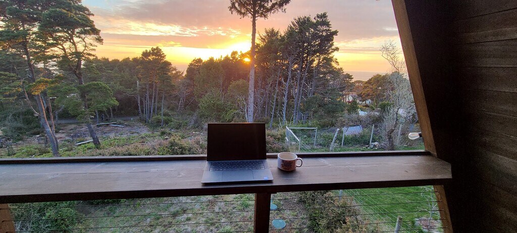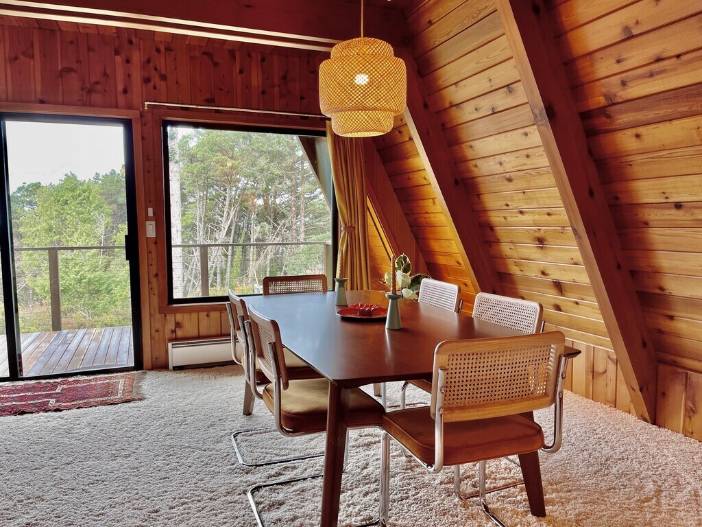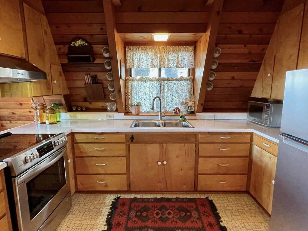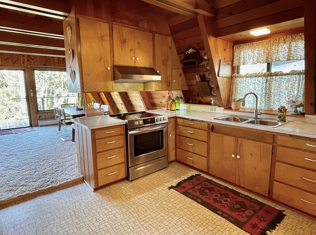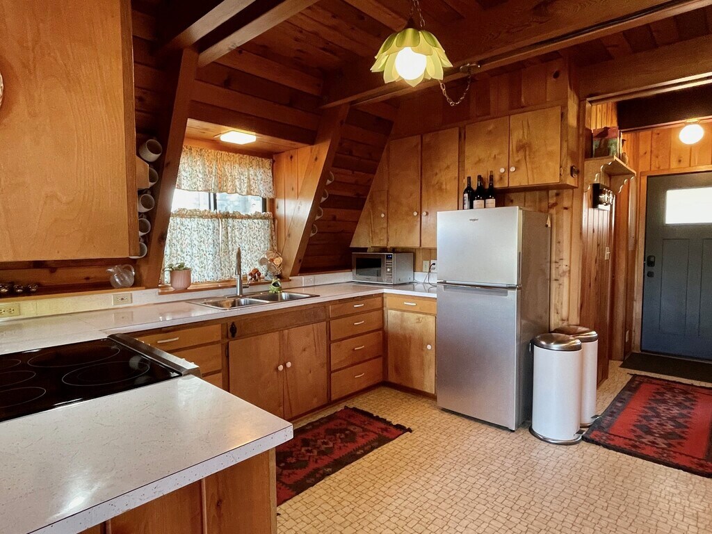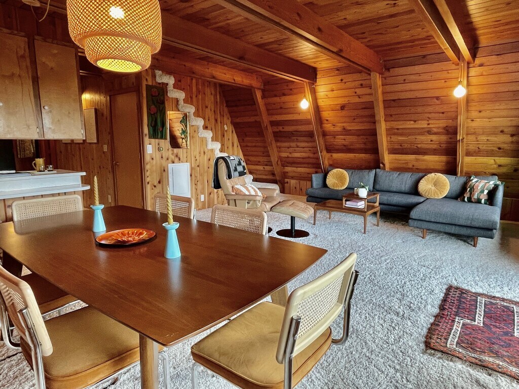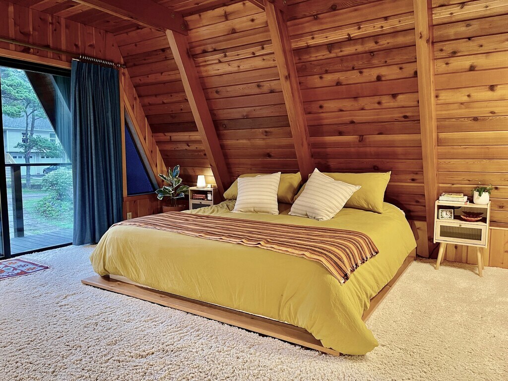 Welcome to the fabled Oregon coast. Featured in Portland Monthly magazine, this ocean view A-frame cabin is nestled between the quaint coastal towns of Waldport and Yachats, where the forest meets the sea. This A-frame was built in 1971 by the Kimball Brothers Lumber Company. All structural and panel lumber was handpicked from their mill in the Willamette Valley. Main floor includes full bathroom, laundry / mud room, bonus room with closet, kitchen with new appliances and living/dining room with sliding door to the deck with views of a coastal forest and the Pacific Ocean. Upstairs includes 2 bedrooms with slider access to decks in each, and a 1/2 bath. Ocean view second story deck has bar counter for the ultimate work from home experience and sunset cocktail. The A-frame cabin has reliably fast internet with UPS backup for the remote worker and is less than 25 minutes from all city amenities and pristine world-class outdoor recreation. This unit is available for lease terms between 3 and 12 months.