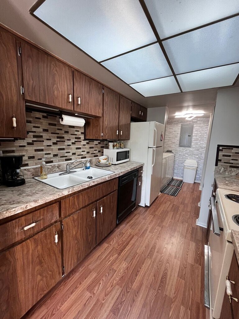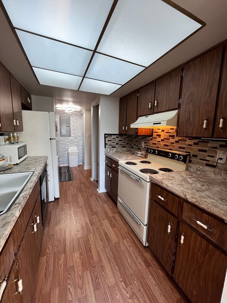Orange Tree Village has an INCREDIBLE LOCATION at the corner of Peel and Curry Ford in the Heart of The Hourglass District. Walk to grocery store, restaurants, breweries, coffee shops, & more. Enter the community from Peel Ave. This 1st FLOOR Condo provides an unparalleled view of the open green space community entrance and tennis courts while the pool is a very short walk. Park in your single car garage and in front of your garage door. Guest parking by the tennis courts. New LVP hard floors. Galley kitchen fully equipped. Modern Bathrooms. Ceiling Fans. New HVAC. Washer and Dryer provided are as-is. Water and Sewer is included.