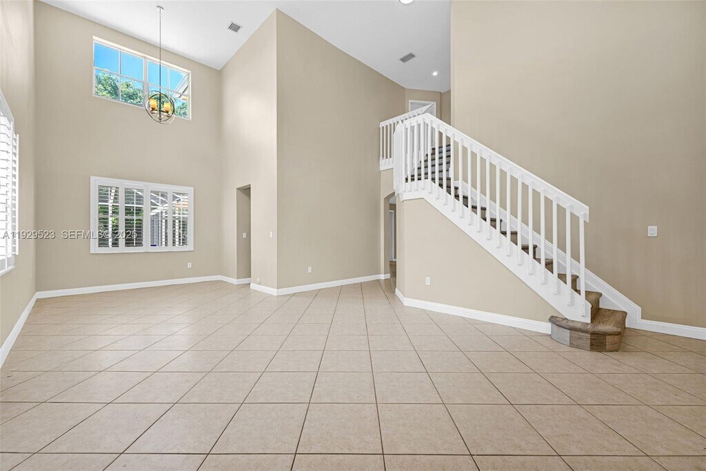 Lease this beautiful Lake-front home at the Monarch Lakes gated community. House feels bright and airy with stunning double-height ceilings and lots of natural light. Home features 4 bedrooms and 3 full bathrooms (1 Bedroom & Full Bath on 1st Floor) with custom built-in closets. Step outside to a large screened-in patio overlooking a tranquil lake and garden perfect for entertaining or relaxing. Large kitchen with breakfast nook featuring wood cabinets, stainless steel appliances and granite countertops. Laundry room with washer & dryer inside. Modern woodgrain vinyl and ceramic tile flooring. New plumbing repiping in 2023. House sits on an oversized lot of almost 11,000 sqft and is located on a quiet cul-de-sac. Close to major highways and shops in SW Miramar. HOA requires 700 min credit score.