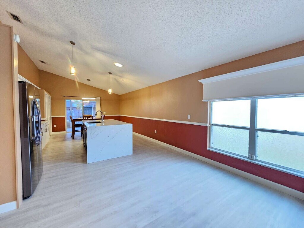 This well designed 3 bedroom, 2 bath home offers an open concept layout with a standout kitchen featuring quartz countertops, a large island, and a sleek waterfall edge, built to impress and built to function. The split floor plan provides privacy, while the spacious living area makes everyday living and entertaining easy. A two car garage includes a washer and dryer for added convenience. Enjoy outdoor living on the screened in porch overlooking a fully fenced backyard. Pets considered on a case by case basis. Available now. Located in West Melbourne, just minutes from shopping, dining, and everyday essentials. Schedule your showing today.