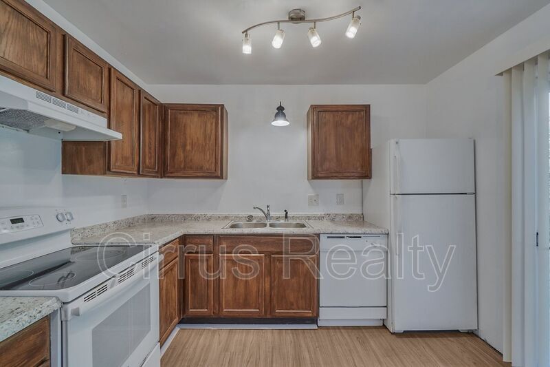 Recently renovated townhouse with two bedrooms and one and a half baths. Recently refinished kitchen cabinets and updated countertops. Newer bath vanities. Vinyl flooring on first floor. Newer wall to wall carpet on stairs and second floor. Eat in kitchen with plenty of room for table and hutch. Refrigerator, stove, and dishwasher included. First floor utility closet with space for side by side washer and dryer (hook ups only). Patio door off kitchen leads to small patio. Open backyard. Amenities: stove, refrigerator, dishwasher, washer and dryer hook ups, eat in kitchen, driveway parking spaces