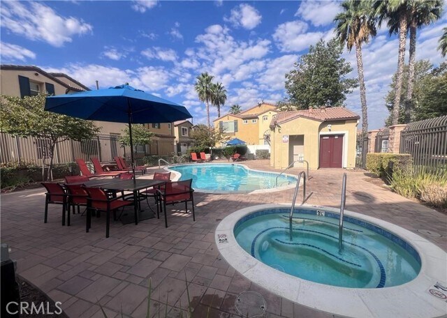 This charming 2-bedroom, 2-bathroom condo offers comfort and convenience with an attached 1-car garage, one extra parking spaces, in-unit laundry, and a modern kitchen featuring a large island, updated countertops, barstool seating, and stainless steel appliances. The open living and dining area includes a cozy fireplace, and a private balcony is perfect for relaxing or entertaining. The primary suite has a walk-in closet, while the second bedroom and bathroom feature stylish finishes. Residents enjoy access to a community pool and spa, and the home is conveniently located near schools, shopping and hospitals. MLS# CV25228245