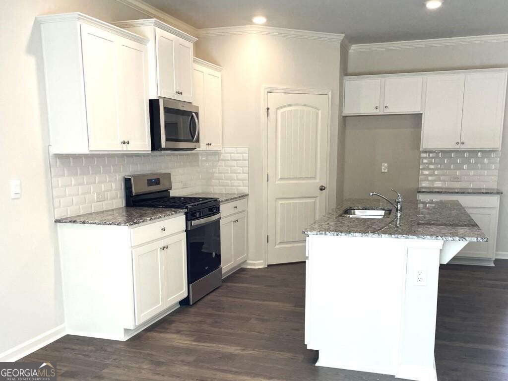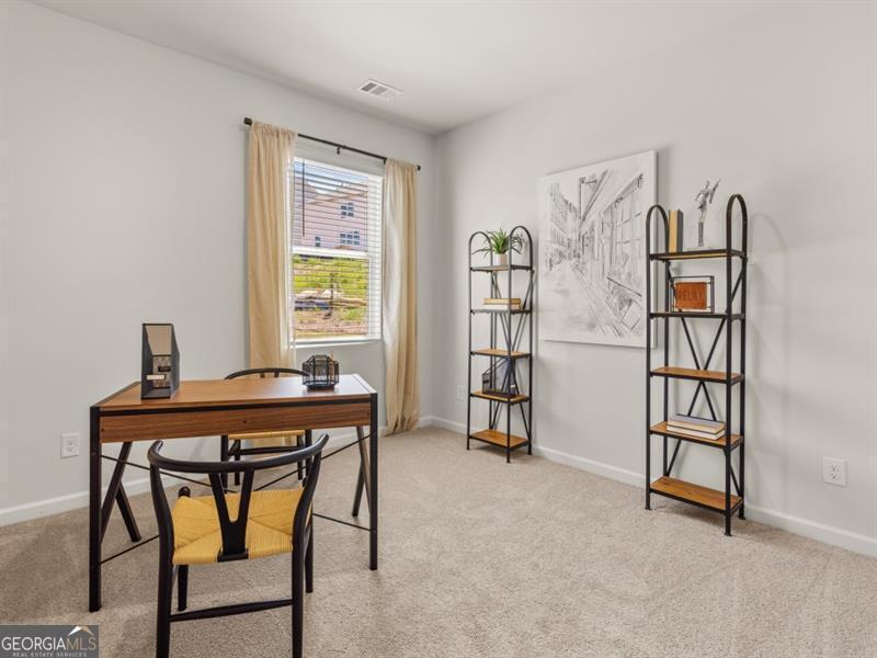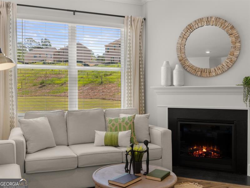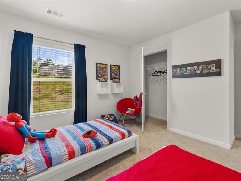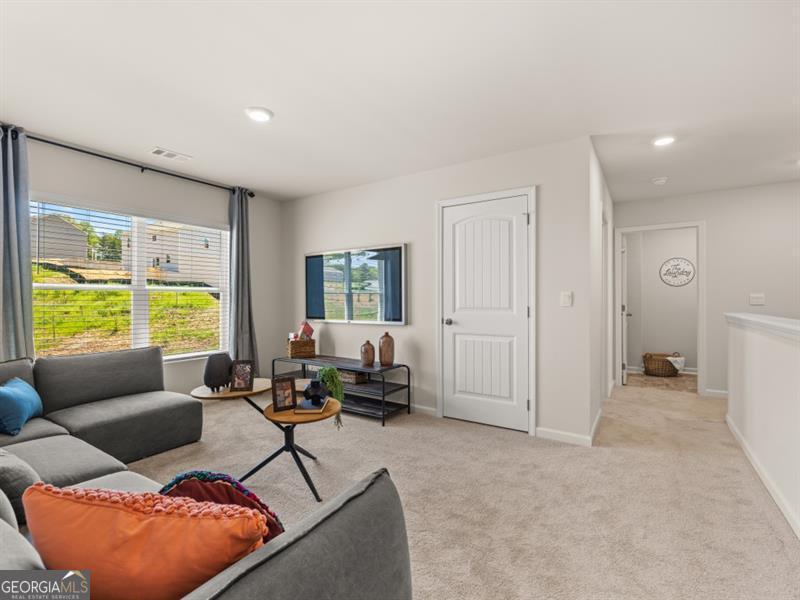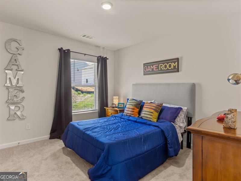 Hayden floorplan home in the Parkside at Carter Grove community with Woodland Hills Golf Course right at your back door! Unbeatable amenities like a clubhouse, tennis courts, junior Olympic pool with kiddie mushroom, and more! This home has a bedroom with full bath on main, perfect for guests. The kitchen features Gas stovetop! White cabinets, granite countertops, and an oversized island that overlooks to the family room. Cozy gas fireplace in family room. Spacious loft area upstairs. Large primary suite with luxurious bathroom with dual vanities, granite countertops, and huge walk-in closet.