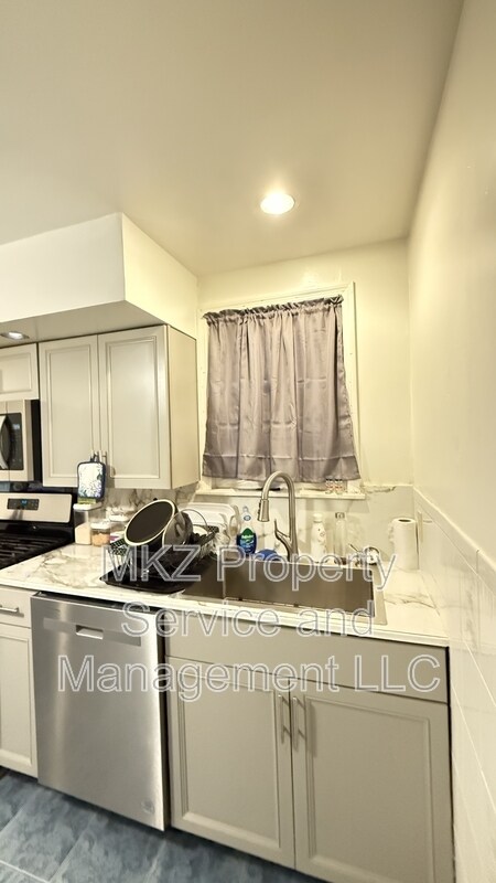 279 Ontario Street is a well-maintained two-family home located in Albany's Pine Hills neighborhood, one of the city's most walkable residential areas. The building is within easy reach of shops and restaurants along Western Avenue and Madison Avenue, with convenient access to CDTA bus routes. The University at Albany uptown campus and Saint Rose College are both a short commute away. The property features a shared backyard with green space and a rear deck, along with a secure common vestibule entry. Recently updated 3-bedroom, 1-bathroom first-floor apartment at 279 Ontario Street in Albany's Pine Hills neighborhood. This 1,200 square foot unit features a spacious eat-in kitchen with new shaker-style cabinetry, marble-look countertops, stainless steel gas range, over-range microwave, dishwasher, and stainless steel refrigerator. A ceiling fan and recessed lighting complete the kitchen, which also has a door leading to the backyard. The full bathroom includes dark tile flooring, a white vanity with modern fixtures, a tub/shower combo with handheld showerhead, exhaust fan, and a window for natural ventilation. All three bedrooms are good-sized, with a mix of hardwood and vinyl plank flooring, and ceiling fans in select rooms. Baseboard hot water heating is provided throughout the unit for comfortable, zone-controlled warmth. The apartment includes a long hallway connecting the bedrooms and living spaces, with tile flooring throughout common areas. Washer and dryer hookups are available in the basement (tenants supply their own machines). The building also offers a shared backyard with green space, a rear deck, and rear entrance access from the kitchen. Contact MKZ Property Service and Management at or to schedule a showing.