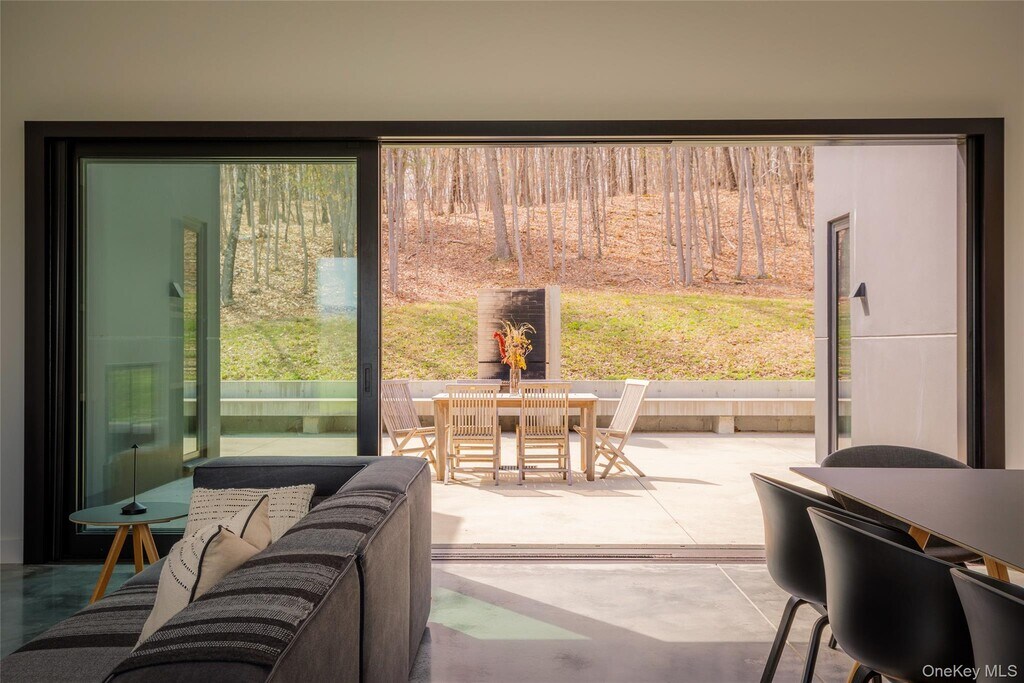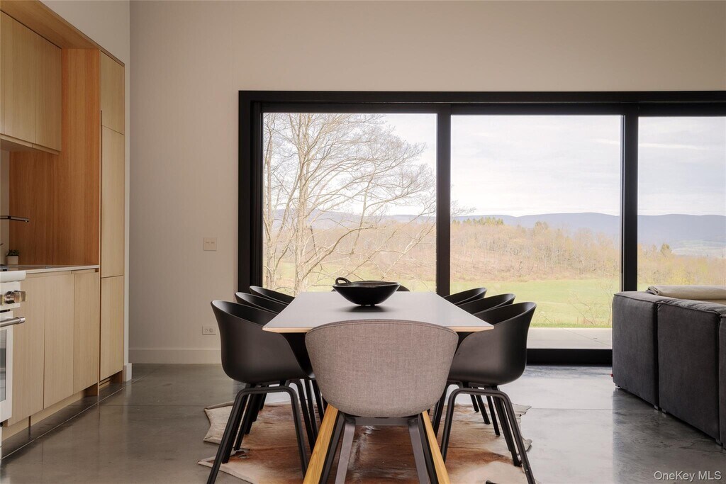 Set boldly on a quiet hillside in Ancram,NY,where open farmland stretches outward and long-range views carry across the horizon,Casa de Campo is an exercise in clarity and restraint. A pre-cast concrete form anchors the structure to the land. Inside,the architecture resolves into clean planes,polished concrete underfoot,and warm oak millwork that introduces just enough softness. Light is the central material. It moves deliberately through the house,gathering along walls,slipping across floors,and pulling the landscape inward. The main living space is defined by 12.5 foot ceilings and continuous walls of glass on either side,dissolving the boundary between interior and exterior. Fields,trees and distant ridgelines become part of the composition,shifting subtly with time of day and season. The kitchen is fully integrated,concealed within custom cabinetry,allowing the space to read as a whole rather than in parts. On either side of the home,two bedrooms are quietly scaled and intentionally minimal. A built-in bunk room offers an additional layer of flexibility,while a separate den with a Murphy bed extends the home’s capacity without interrupting its rhythm. The bath continues the same language,with a walk-in shower positioned beside a full-height window,framing a close view of the surrounding woods. Outside,a broad concrete terrace runs along the façade,a place to sit with the landscape as it unfolds across open farmland and distant hills. The setting is distinctly rural,yet composed,with a sense of space that feels both expansive and deeply private. Offered as a long-term,furnished rental,this is a home for someone attuned to architecture,to light,and to the quiet presence of the land. Despite its privacy,the home is ideally located for access to the surrounding region. Just minutes to Millerton for coffee,dining,and the Harlem Valley Rail Trail. Catamount Mountain Resort is nearby for skiing,hiking,and year-round outdoor recreation. The Berkshires,including Great Barrington and Lenox,are within easy reach,offering a well-known mix of cultural destinations,farmstands,and seasonal events. A setting that balances seclusion with proximity to some of the most sought-after destinations in the Hudson Valley and western Massachusetts,Casa de Campo is an ideal home base for exploring the Hudson Valley and Berkshires from a low-maintenance,modern,design-forward retreat. Offered Furnished MLS ID KEY990497 Based on information submitted to the MLS GRID as of [see last changed date above]. All data is obtained from various sources and may not have been verified by broker or MLS GRID. Supplied Open House Information is subject to change without notice. All information should be independently reviewed and verified for accuracy. Properties may or may not be listed by the office/agent presenting the information. Some IDX listings have been excluded from this website. Prices displayed on all Sold listings are the Last Known Listing Price and may not be the actual selling price.