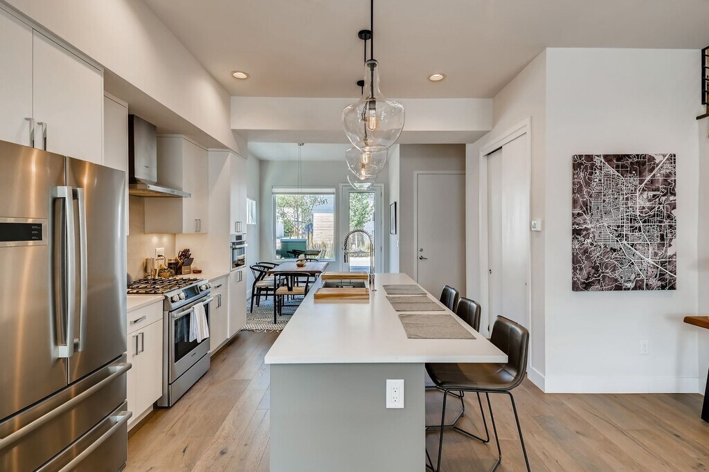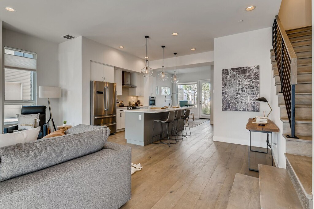 INCREDIBLE Central Boulder Townhome - This property is an immaculately constructed FULLY FURNISHED townhome, located in Central Boulder. This incredible home affords approximately 2,027 square feet of gorgeous interior living space with 3 bedrooms, 2 full baths, and a powder room. Spectacular rooftop deck provides views of the Flatirons. Outstanding room proportions with tons of windows provide an abundance of natural light and a bright, airy feel throughout. Superb home features include third floor wet bar, Bosch washer and dryer set, fireplace in the living room, and central air conditioning. This property is situated conveniently in the Steelyards neighborhood, steps away from Whole Foods, Trader Joe's, restaurants and shopping, as well as major transportation lines. This home comes FULLY FURNISHED with all utilities and internet included. For serious inquiries, please reach out to Ross at || Summer Rates (Mar - Oct) || - $6495 || Winter Rates (Nov - Feb) || - $5995 *Please note that if you are requesting during a month that is marketed available for the Winter that this scale will affect any months during your stay that fall in the higher month tier. Thanks in advance for your understanding. RHL-00994102 Per HB23-1099, a prospective tenant has the right to provide the landlord a portable tenant screening report, as defined in section 38-12-902(2.5), Colorado Revised Statutes; and if a prospective tenant provides the landlord with a portable tenant screening report, the landlord is prohibited from charging the prospective tenant a rental application fee; or charging the prospective tenant a fee for the landlord to access or use the portable tenant screening report. The portable tenant screening report must be provided to the landlord directly by the consumer reporting agency and can be no more than 30 days old.