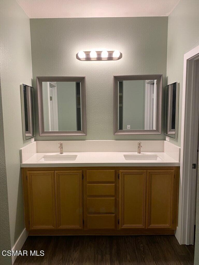 Exquisitely updated single level, upstairs condo with 2 bedrooms and 2 bathrooms. Perfectly flowing floorplan from the living room with a fireplace to the dining room that opens to the balcony overlooking the pool. The kitchen features newer stainless appliances and quartz counters. Down the hallway you will find the guest bedroom and laundry room with extra storage and the guest bathroom. The master suite features another balcony as well as a large walk-in closet, double vanities, soaking tub and stall shower. Plantation shutters and newer paint and flooring throughout. Includes refrigerator, washer, dryer, microwave, toaster oven. 2 car garage with direct access. Community pool and spa just across from the unit. Close to shopping, schools, and the freeway.