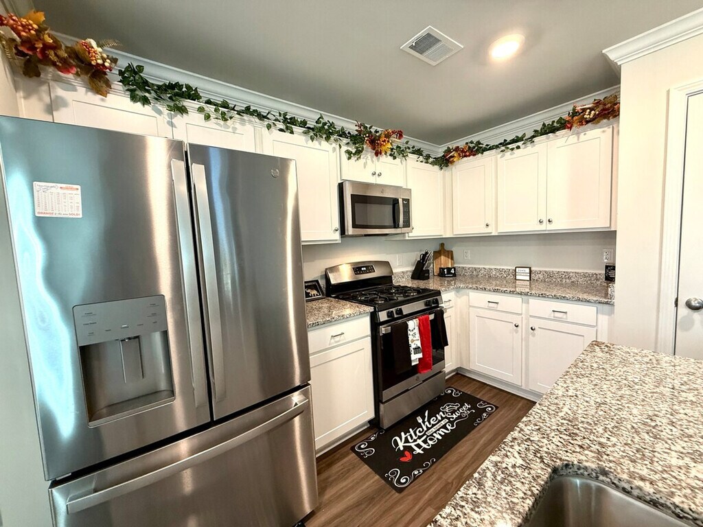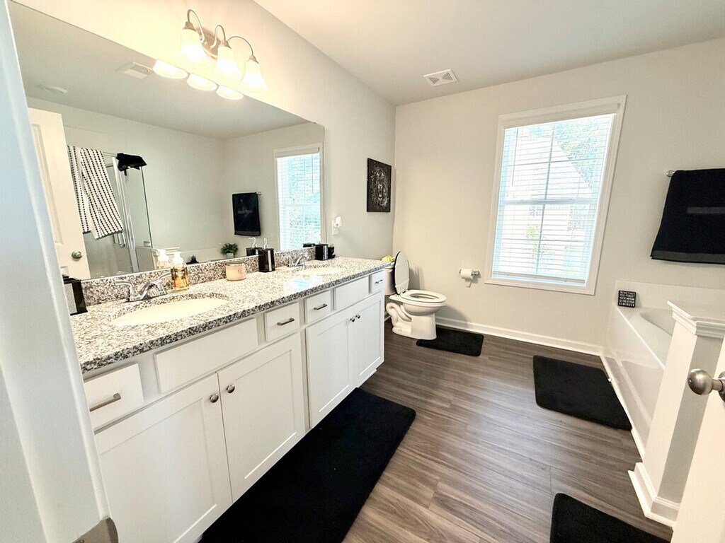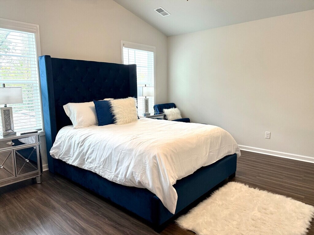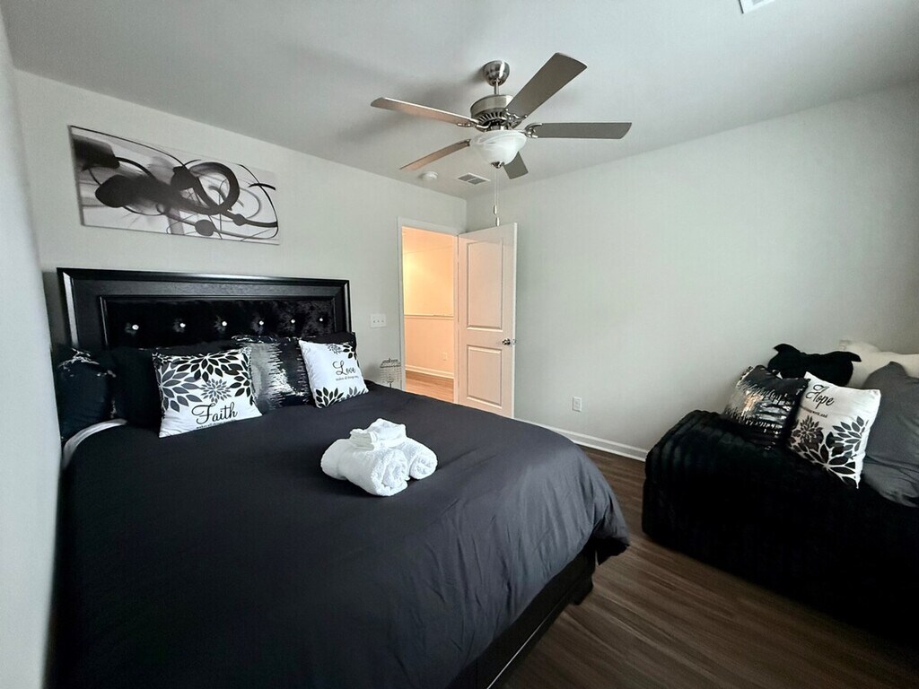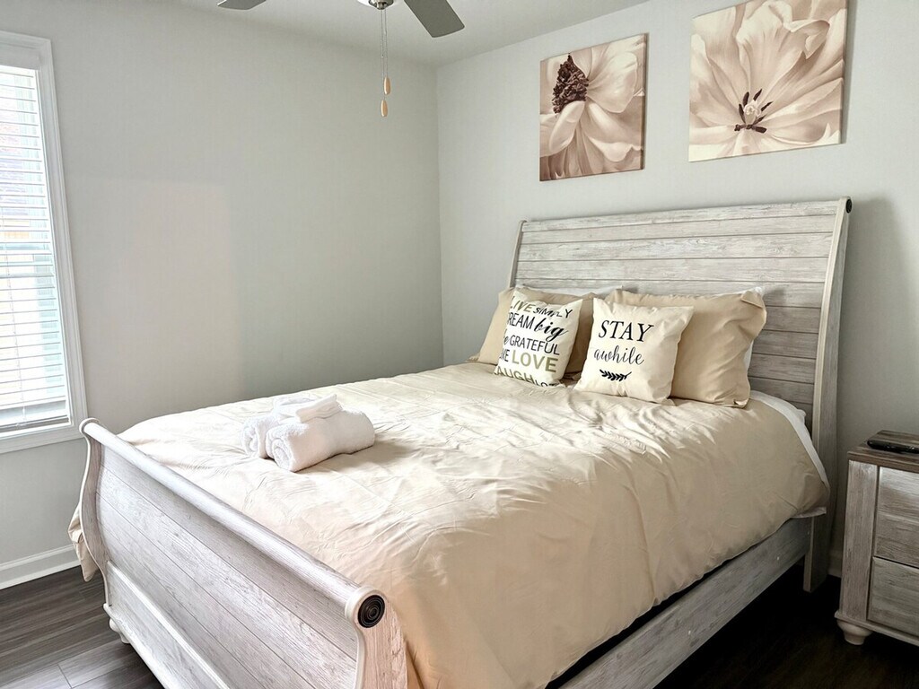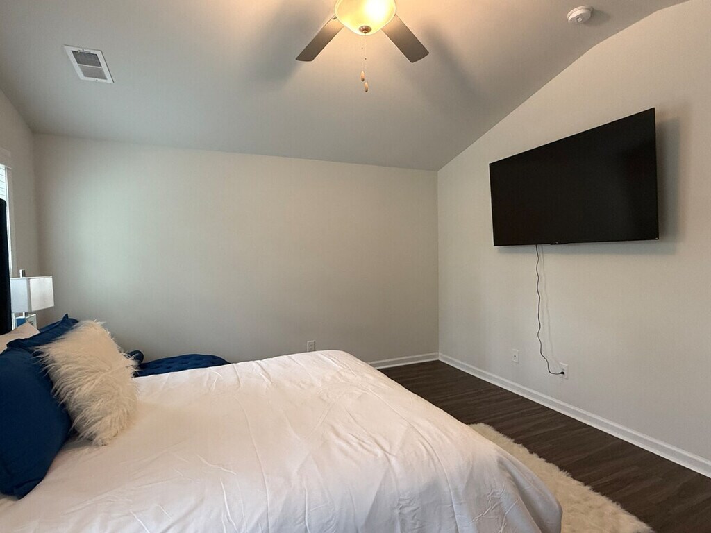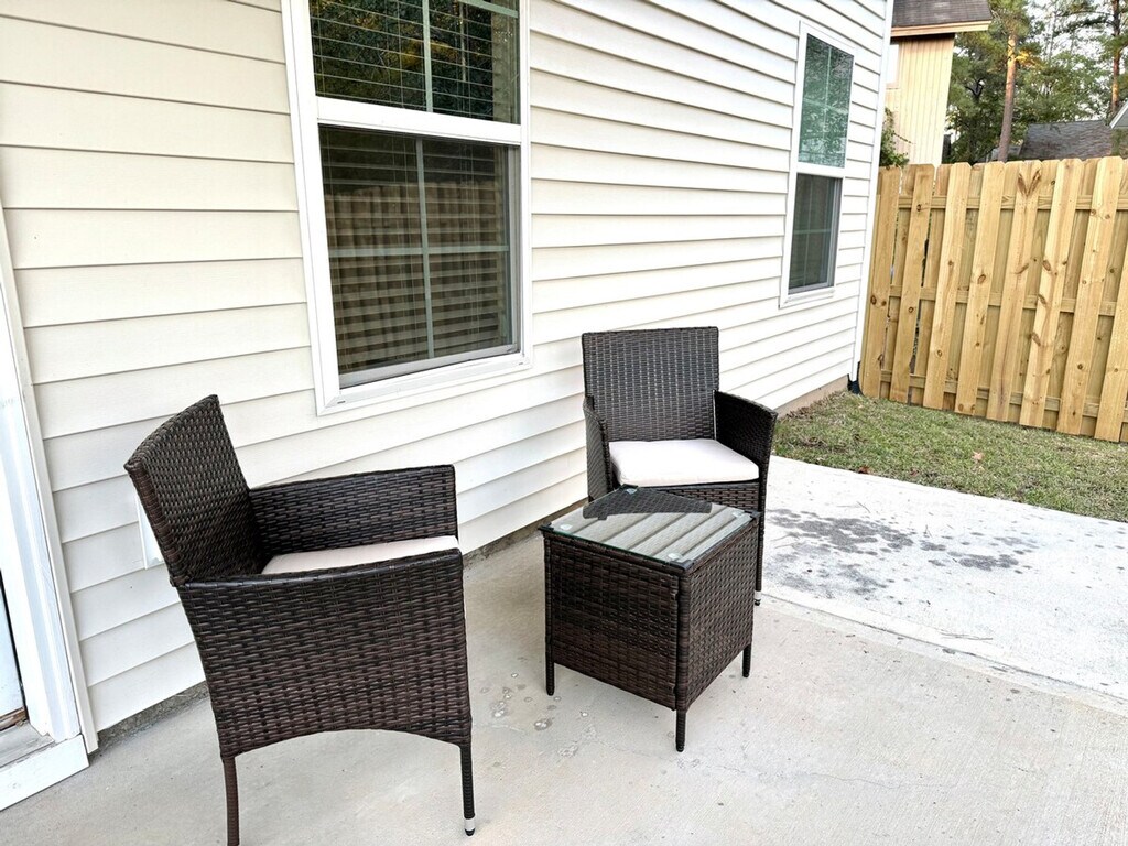 Relax and feel at home in this peaceful and spacious newly built 3-bedroom home, accommodating up to 6 guests. Downstairs, you'll find two sitting rooms, one with stylish chairs and lots of open space, and the second with a huge, comfy sectional perfect for movie nights and relaxing after a long day. Alongside the living room is a fully stocked kitchen, dining area, and quiet, private backyard space. Upstairs, there are 3 bedrooms, 2 bathrooms, a laundry room, and a dedicated workspace. Amenities include a smart TV in each bedroom, in-unit washer and dryer, and backyard patio/area. Guests will have access to the entire home. No access to the garage will be given. Situated within 20 minutes of Columbia's attractions, it's an ideal stay for groups, families, or workers for a weekend or long-term stay. It's 15 minutes to Fort Jackson, 20 minutes to Downtown Columbia and Riverbanks Zoo, and 30 minutes to Shaw AirForce Base. All reservations will require a simple registration process to include ID verification and a rental agreement; it's a super easy process that takes less than 5 minutes. [SI]