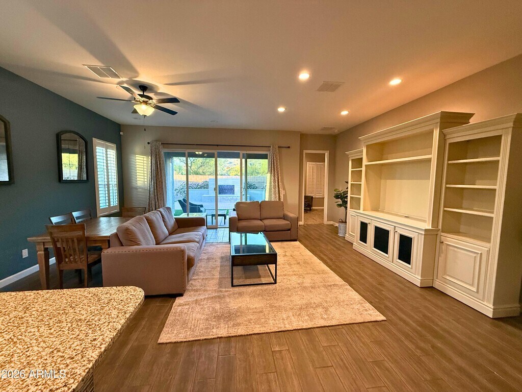 FORMER MODEL HOME WITH UPGRADES AND FULLY FURNISHED AVAILABLE FOR MOVE IN ASAP. Separate Room For Office/Den . Located in a gated community directly across from the award winning Norterra at Fireside Community Center which offers Pool,Gym,Tennis Courts,Playground,Picnic Tables,Rec Room. This community is very desirable! Low maintenance yard with fruit Trees. Great Room floorplan with gorgeous tile/wood floors. Upgraded lighting in all rooms,SmartHome technology. Huge kitchen with Island seating,kitchen banquet for in Kitchen dining.