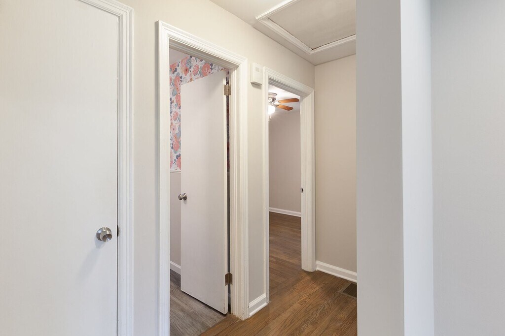 This beautifully renovated 3 BR / 2 BA ranch-style home features a bright, open-concept layout designed for easy living. The modern kitchen’s crisp white cabinetry, floating shelves, and breakfast bar flow seamlessly into the living area—perfect for both everyday comfort and entertaining. The split bedroom design places the generous primary suite on one side of the home, offering privacy, while two additional bedrooms share the guest bath. Thoughtful updates include new roof, windows, exterior doors, HVAC, water heater, wiring, and plumbing—making it fully move-in ready. Hardwood floors extend throughout the home, anchored by recessed lighting and contemporary finishes. Outside, enjoy a flat, fenced backyard and charming courtyard—ideal for outdoor living, gatherings, or pets. Located in sought-after Gresham Park, this home pairs refined comfort with everyday convenience. The Highland Residential Group, LLC