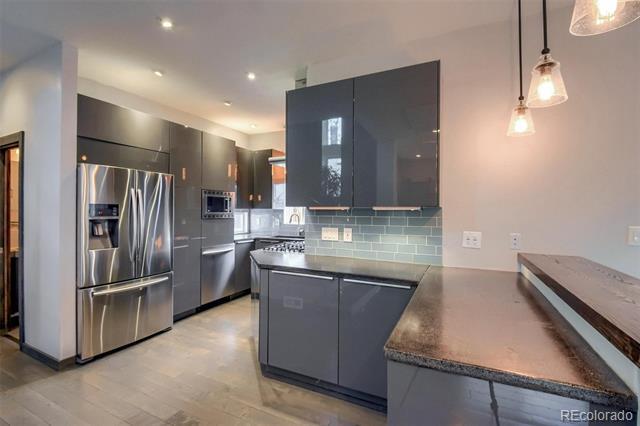 Uber chic, custom single family home merges contemporary accents with the modern conveniences of an open floorplan, 3 bedrooms up, 2 car garage and private fenced yard. The main level welcomes you with a large, bright living room that includes a butane gas fireplace, and opens up to your dining/bar spaces and European kitchen. The sleek kitchen boasts a gas cooktop with vent hood, Euro-style cabinets, concrete countertops, glass subway tile black splash, breakfast bar, and stainless steel appliances. The dining area, with reclaimed wood accent wall, includes a wet bar with concrete counters, wine fridge and mounted TV. Heading up to the second floor, you will be impressed with the floor-to-ceiling river stone accent walls, that lead to your two guest bedrooms and additional full bath, as well as the large primary suite. The primary retreat boasts a separate sitting area with mountain views, professionally built walk-in closet, and contemporary bath with dual vanity sinks and incredible rainfall shower (with multiple water jets!).The exterior has a wraparound deck on the front and side, and the fabulous and private backyard includes a plethora of gardening options for fruits and veggies, as well as an abundance of space for entertaining on the deck. The oversized, detached, two car garage holds plenty of room for all of your projects, with tons of shelving and storage. *Available beginning of March 2026 *Lease Term: preferred Spring/Summer months *Property is being offered Unfurnished only *Security deposit = 1 month's rent *Tenant responsibilities: all utilities (gas, electricity, all water utilities, sewer, trash/recycling/compost), security system (if desired), landscaping/exterior maintenance, and snow removal *Dogs conditionally considered with additional pet deposit. *Renter's Insurance with a general liability policy of $500,000 required to be carried by Tenants. **AGENT-OWNER (Owner is a licensed Real Estate State Agent in the State of Colorado). Single Family Residence MLS# 7558327