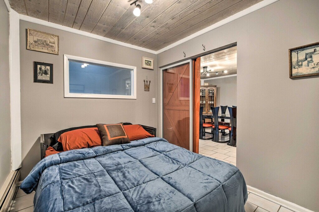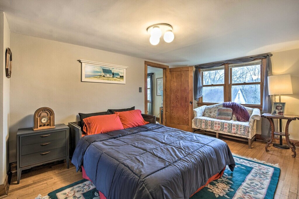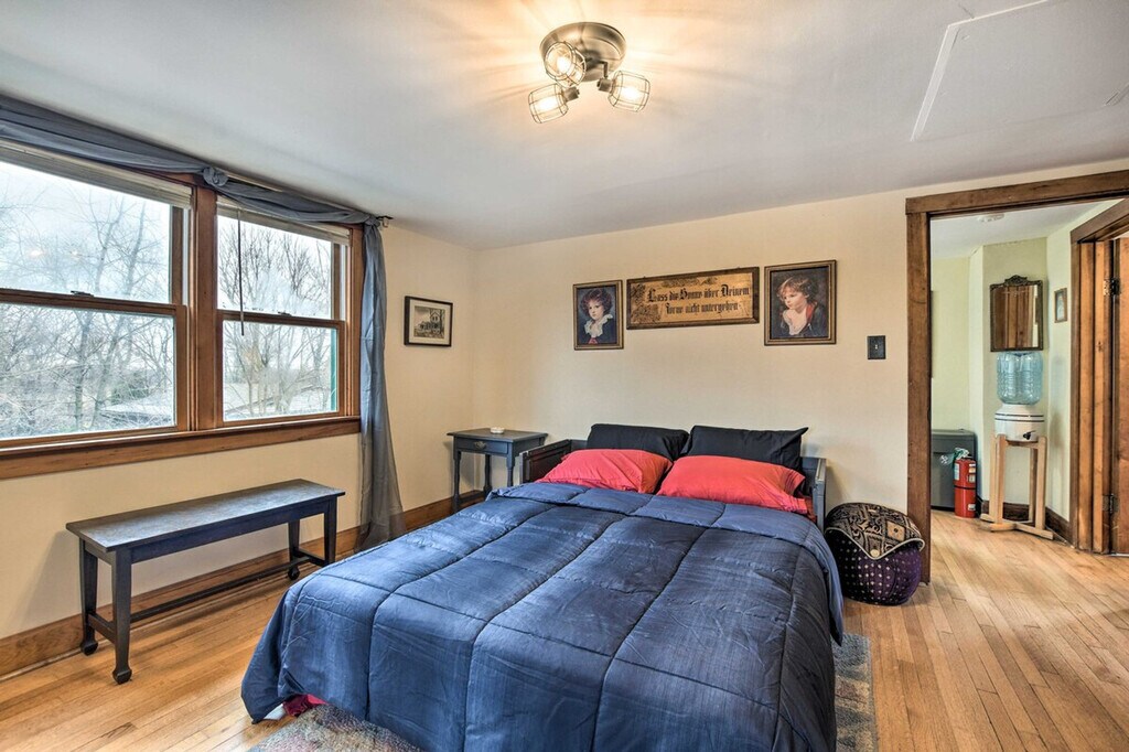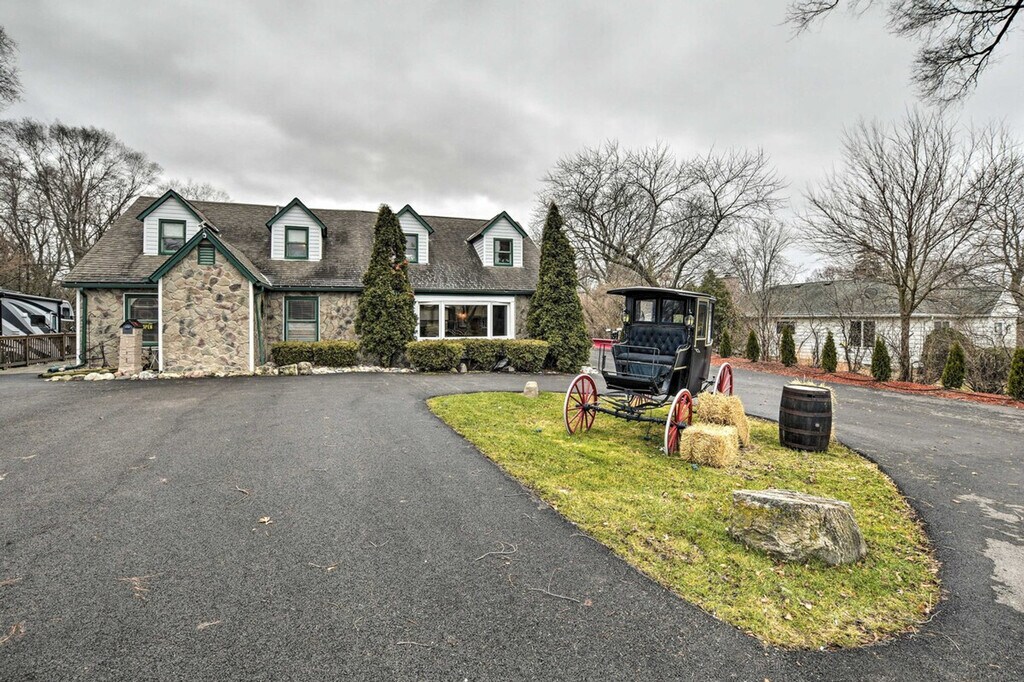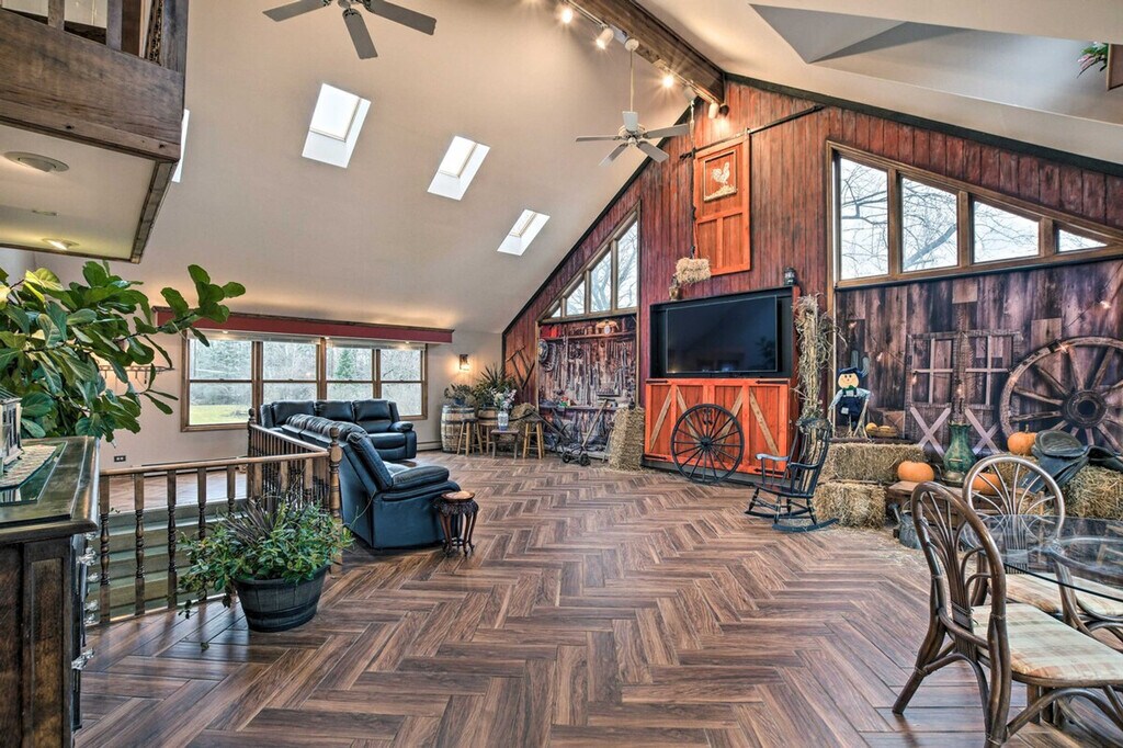 Nestled on nearly 2 acres of land, 'The Bartlett House' is a charming farmhouse perfect for your next getaway to the Prairie State. This spacious home features 4 bedrooms and 2 baths, offering ample space for relaxation. Enjoy the open yard with a barn and a large, fenced-in doghouse, making it ideal for families and their furry friends. Capture memorable moments with the property's historic horse-drawn carriage and tractor, and explore nearby attractions like Sunrise Park and the Cosley Zoo. This 3,100 sq ft farmhouse provides a cozy living experience with a smart TV, ample off-street parking, and free WiFi. The interior includes dining tables, a workspace, a piano, an indoor balcony, and a free-standing bathtub. The kitchen is fully equipped with a stove, oven, microwave, refrigerator, and more, ensuring you have everything needed for a comfortable stay. Pets are welcome with a $150 fee for up to 2 pets. The property offers RV/trailer parking and RV hookups on-site, providing convenience for travelers with larger vehicles. Conveniently located less than 1 mile from the Metra Station, this property offers easy access to local attractions and transportation. Explore the neighborhood's charm and enjoy the nearby parks and zoo, making it a perfect spot for both relaxation and adventure. The property is pet-friendly with a fee and allows a maximum of 2 pets. Smoking is not permitted, and there are no events, parties, or large gatherings allowed. Guests must be at least 25 years old to book. The home features 4 exterior security cameras for safety, facing outward and not into interior spaces. Check-in is facilitated through keyless entry, and a photo ID may be required upon check-in. Note that there are no laundry machines available on the property, and interior staircases are required to access all bedrooms on the lower and upper levels. [SI]