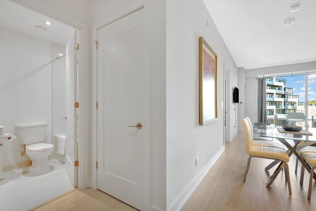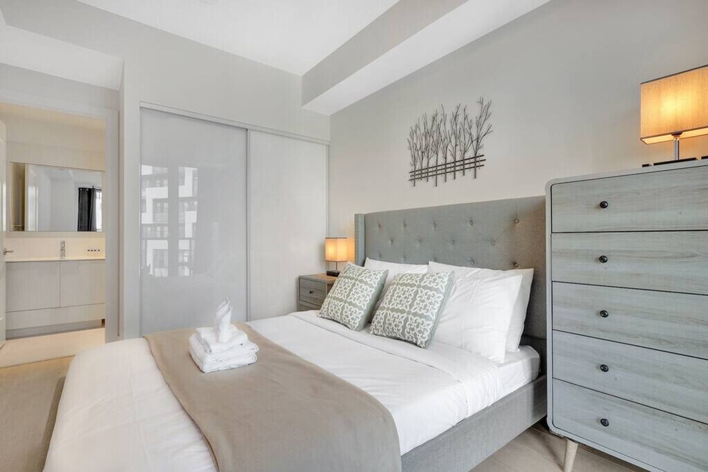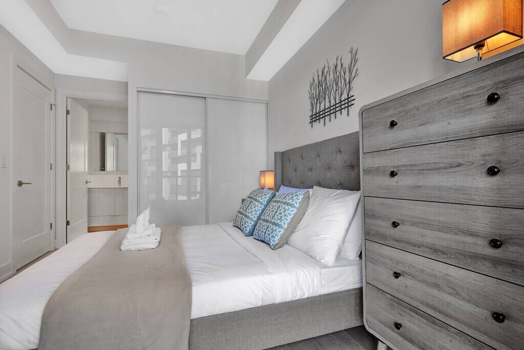 Discover a new luxury condo on the park, just a short walk from Leslie Subway and North York General Hospital. With easy access to highways 401, 404, and DVP, this condo offers convenience and connectivity. Feel at home with a fully equipped kitchen featuring full-size appliances, a full-size washer and dryer in-suite, and two full washrooms. The bedroom boasts a queen bed, and there's a twin bed in the cozy den, perfect for guests or additional space. Enjoy the state-of-the-art amenities, including both indoor and outdoor pools, a fitness facility, and a 24/7 concierge desk. The condo is professionally managed, ensuring a seamless living experience. The condo offers access to both indoor and outdoor pools and a fitness facility, providing ample opportunities for relaxation and exercise. Located within walking distance to Leslie Subway and North York General Hospital, this condo offers easy access to public transportation and essential services. Minutes from highways 401, 404, and DVP, you'll find commuting a breeze. A minimum stay of 30 nights is required. Smoking and parties are not allowed, ensuring a peaceful living environment. The condo includes a workspace and a smart TV, making it ideal for remote work and entertainment. [SI]