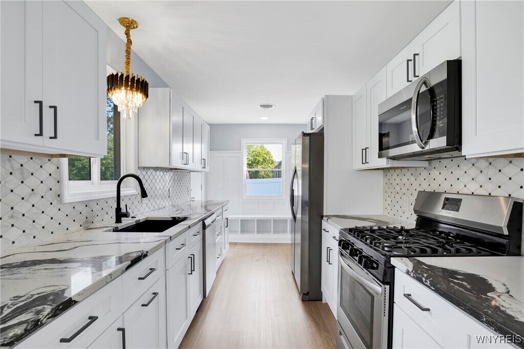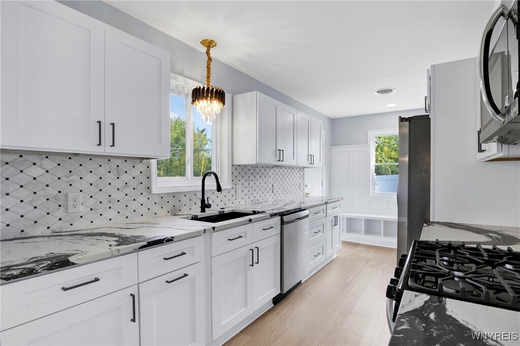 FOR RENT! Everything is brand new! This no-step ranch features a stunning living room that seamlessly connects to the dining area,which then leads to a modern kitchen complete with updated appliances. It includes three spacious bedrooms and a full bathroom. Enjoy the convenience of first-floor laundry (not included) along with a half bath adjacent to the laundry room. The garage provides excellent storage space,and there’s an additional shed in the backyard for even more storage. Relax and unwind on the back patio or in the hot tub. The backyard is generously sized with low-maintenance landscaping and a newly poured concrete driveway enhances the overall charm. Experience easy living—just unpack your bags and settle in!