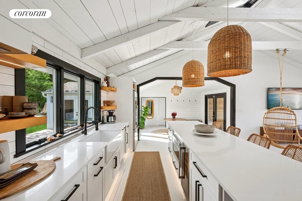 This gorgeous coastal cottage comes fully furnished, and is located in the very special Sag Harbor community of Bay Point. It's just been completely renovated, perfect in every way, and ready for you to move in. Enjoy glimpses of Noyac Bay from the open floor plan living room and custom kitchen with Fisher Paykel appliances. The three ensuite bedrooms are thoughtfully laid out, with each bedroom privately situated away from the others. Other fabulous details include Serena and Lily lighting fixtures, radiant heat flooring, ample deck space, a swanky outdoor shower, and a heated gunite pool with salt water filtration. The fab location can't be beaten: around the corner from Long Beach, Serene Green Farmstand, Shelter Island Ferry or Sag Harbor Village. [[Rental Registration # RP240655]]