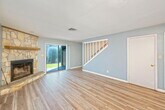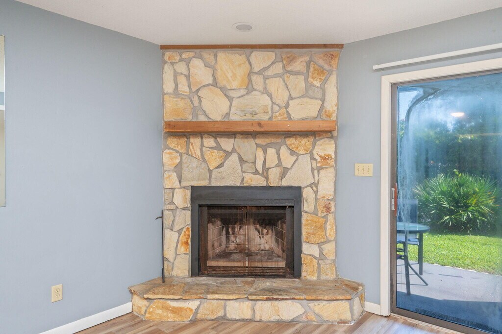 Welcome to this charming two-bedroom, two-and-a-half bath townhome with a private entrance and inviting covered front porch, located in the heart of Destin near the Executive Airport. Step inside to a bright living room featuring ceramic tile and luxury vinyl plank flooring, a stone-surround fireplace with mantel, and a sliding glass door that leads to the back patio. The kitchen is well-appointed with stainless steel appliances, a stylish tile backsplash, and windows overlooking both the living area and the exterior for plenty of natural light. A half bath downstairs includes a stone countertop vanity, making it perfect for guests. Upstairs, the carpeted bedrooms are generously sized, each with its own private bathroom.