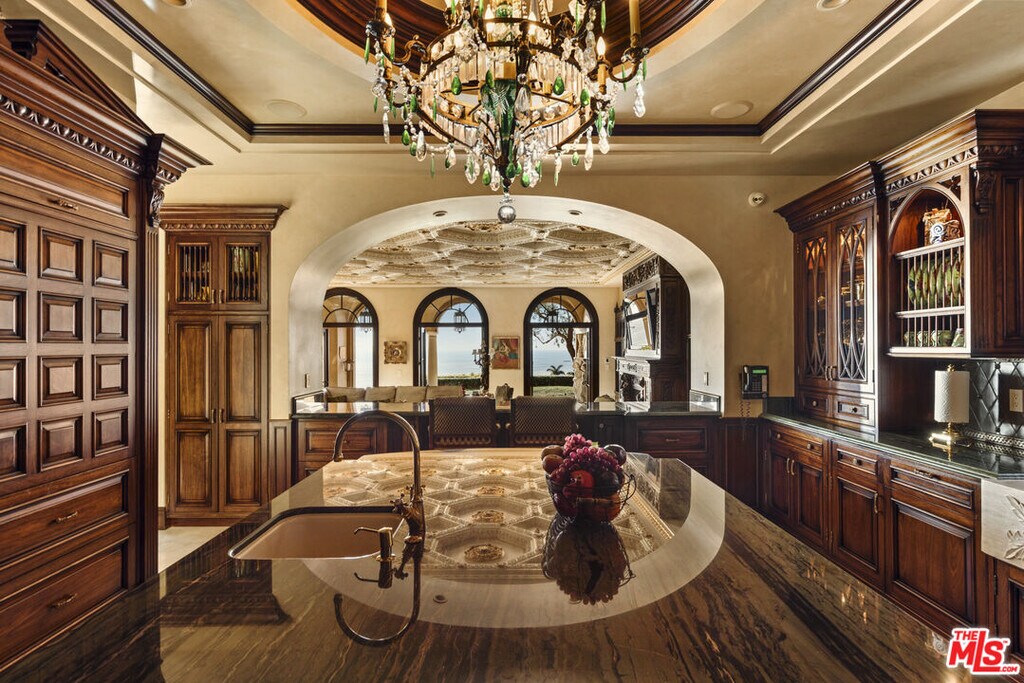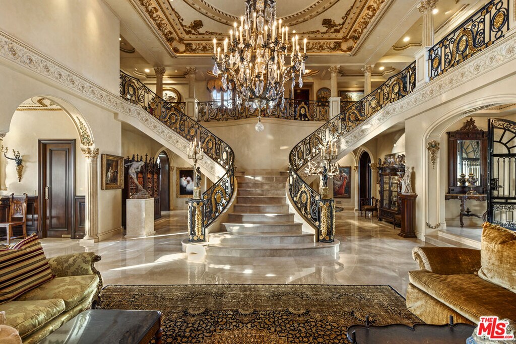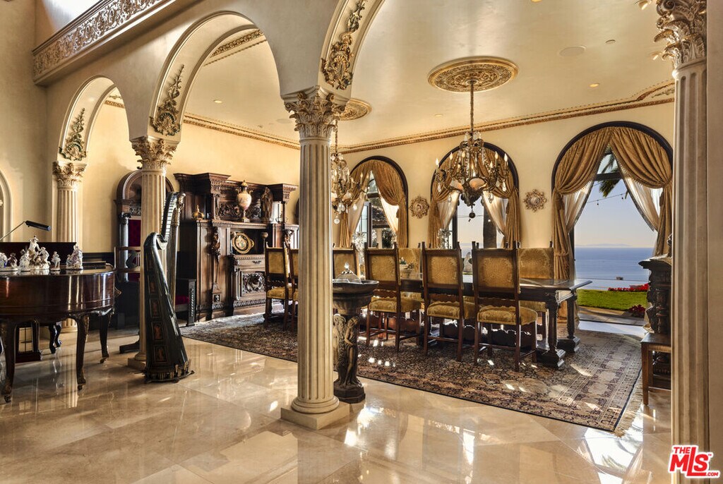 Chateau Soleil is a French chateau-inspired masterpiece perched atop the hills of Newport Coast within the ultra-exclusive Crystal Cove enclave. This extraordinary estate commands sweeping ocean views stretching from the peninsula to Catalina Island. Custom-built with uncompromising attention to detail, the residence showcases unparalleled craftsmanship and finishes throughout. Imported stonework, rare materials, and one-of-a-kind antique pieceseach thoughtfully curated from around the world, including every chandelier define the home's timeless elegance. Arrival is nothing short of cinematic, greeted by two mature olive trees and a manicured garden adorned with classical water features that guide you to the grand entrance. The opulent foyer opens to a breathtaking living room crowned by a dramatic 28-foot ceiling and illuminated by a palatial Louis XV Baccarat chandelier, crafted after a model by renowned French sculptor Jacques Caffieri. A grand staircasean exquisite replica of the Titanic railing with gold-plated detailing leads to the second level. Also on this floor, the office is a true work of art, featuring hand-carved mahogany wall panels and a richly coffered ceiling. The formal dining room centers around a magnificent 15-foot table accommodating up to 12 guests and opens to the expansive backyard with dramatic ocean views. The world-class kitchen is designed to Michelin-chef standards, outfitted with dual oversized refrigerators, Viking appliances, a La Cornue gas range, and an impressive center island. Adjacent is a casual dining area accented by a stunning Murano chandelier. The spacious family room embodies European elegance with a massive fireplace, ornate coffered ceilings, and multiple French doors that open onto the enchanting backyard. The residence offers four bedrooms, including one on the main level and three upstairs. The expansive primary suite is a private sanctuary featuring a sitting area with an elegant fireplace, French doors opening to a generous private terrace overlooking the pool and sweeping ocean views, and a lavish en-suite bathroom with a soaking tub, separate shower, and dual walk-in closets. An elevator descends to the lower-level entertainment floor, complete with a game area, full bar, and spa retreat featuring a steam shower and sauna. The neoclassical private cinema is a masterpiece of its own, adorned with red silk walls and rare figural torchres by Antoine Durenne, Paris, circa 1900. The backyard is a serene oasis with an infinity-edge pool and integrated spa, expansive lawn, romantic seating areas, and a fire pitall framed by breathtaking coastal vistas. The subterranean garage can accomodate 5-6 cars. The scale, craftsmanship, and architectural pedigree of Chteau Soleil make this estate a truly one-of-a-kind masterpiece, offering an unparalleled lifestyle of elegance, privacy, and world-class luxury. MLS# 26645507
