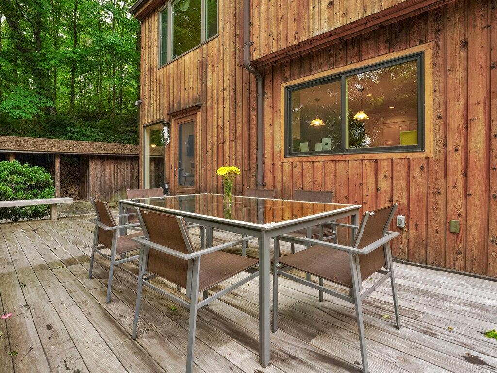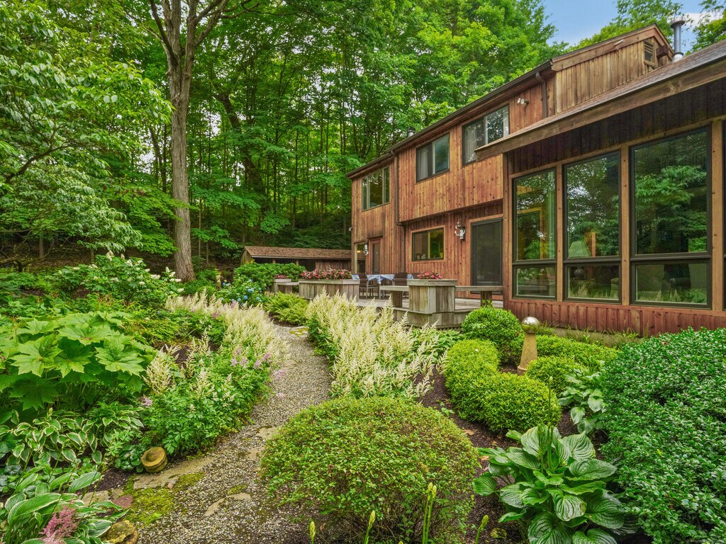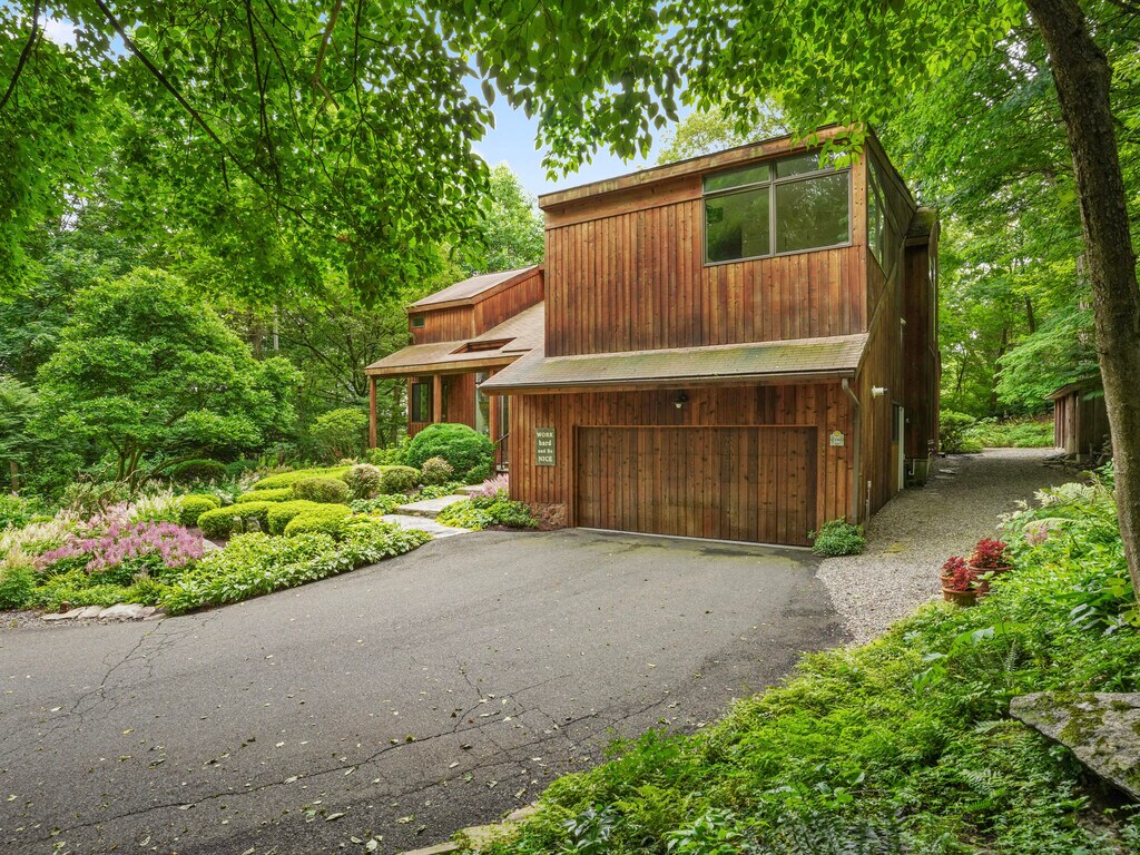 Call for Availability - Step into this exceptional contemporary home, ideally located in lower Easton - just minutes from shopping, amenities, and major highways! Hardwood floors flow throughout, and the home is currently being freshly painted. Featuring floor-to-ceiling windows and breathtaking views, this 4- to 5-bedroom residence offers a serene, private retreat with an open floor plan and modern amenities. The first floor boasts dramatic vaulted ceilings, 2 fireplaces, and abundant natural light, along with an office (or 5th bedroom). The updated kitchen with center island opens seamlessly to the family room and dining area, which features custom built-ins with sconces. Enjoy effortless indoor/outdoor living with access to the IPE deck from both the sitting area and kitchen. Upstairs, the expansive primary suite overlooks the spectacular property and includes radiant-heated floors throughout the primary bath and dressing room, an additional custom walk-in closet, and a spa-like bath with soaking tub, double sinks, and spacious shower. This unique suite also includes a half bath and a full laundry room with sink. Three additional bedrooms, another full bath, and a cedar closet complete the second floor. Additional highlights include a full-house generator, landscape lighting, and a heated driveway. Come see this remarkable home and its beautiful gardens and grounds for yourself! MLS# 24130388