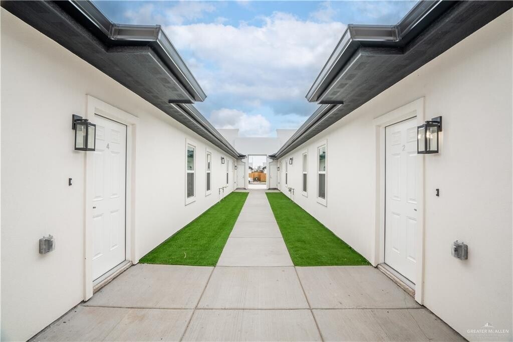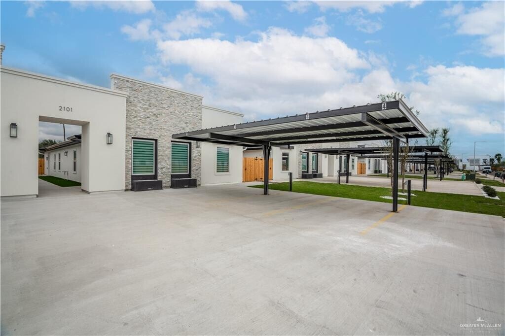 Brand new spacious modern open concept 2 bedroom 2 full bath apartment. With a great location between Shary Rd and Glasscock,Sharyland ISD,close to shopping and restaurants,this unit comes fully equipped with appliances,including a refrigerator,stove,microwave,washer,custom built ins,TV wall mount,synthetic grass on your back and unbelievable spacious back patio,and your carport is ready for your own electric car charger!!!! Look no further,you will be amazed with its soothing paint color and architectural design. Call to schedule your private showing