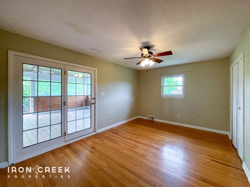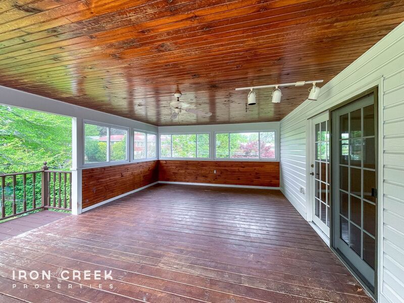 28 Green Valley Road is a spacious three-bedroom, two-and-a-half bath home split-level home in West Asheville. The home is situated on a beautiful lot with a fenced in backyard and standalone garage perfect for a workshop or extra storage. The kitchen is on the main level and is outfitted with an electric stove-top, built-in electric oven, dishwasher, and refrigerator. A pantry, half-bath, and generously-sized laundry room are accessible via the kitchen. The main level is also home to the living room, dining room, and small sitting room. The bedrooms are located on the upper level and share one of the full-baths. The largest bedroom opens onto a covered and semi-enclosed deck. This deck offers a perfect place to enjoy the outdoors no matter the weather. The lower level features a pair of finished bonus rooms with one room opening directly to the driveway. This room is where you will find the second full-bath with a no-threshold shower and wheelchair accessible sink. Central heat and air keep you comfortable year round. Tenant pays all utilities. This property is pet-friendly, up to two pets, with a $250 refundable deposit per pet. Sorry, no co-signers.