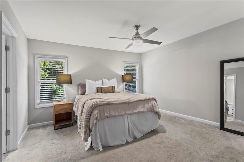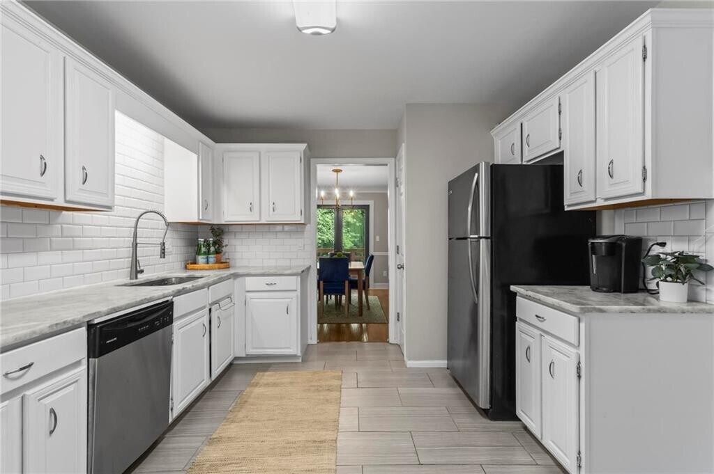 Welcome to 28 Huntington Place Drive! This charming 3-bedroom,2.5-bath brick end-unit townhome offers a rare combination of space,privacy,and convenience in an unbeatable location. Step inside to find a large living room with a cozy fireplace that flows seamlessly into the spacious dining area—perfect for entertaining. The living space opens to an expansive deck overlooking a private wooded backdrop,creating a serene retreat right at home. The kitchen is spacious and features white cabinetry,a pantry,and elegant marble countertops. Upstairs,the primary suite features an updated bathroom and dual closets,while two additional bedrooms share a full bathroom with updated countertops. A two-car garage and ample basement storage provide practical functionality and convenience. Huntington Place is a small community centrally located near many shopping,dining,and recreational options. Outdoor enthusiasts will love being less than 2 miles from the Chattahoochee River and Riverside Park,while vibrant Canton Street in Downtown Roswell is only 2 miles away. Plus,quick access to GA 400 and Sandy Springs makes commuting and exploring the city a breeze. Washer and dryer included.