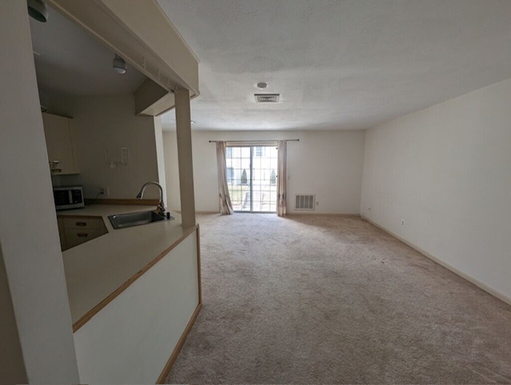 2-bedroom, 1-bath second-floor corner condo available at Stoney Creek Condominiums, featuring natural gas FHA heat, central A/C, sliders to a private balcony, in-unit washer and dryer, and two assigned parking spaces. One cat may be considered; this community is smoke-free and does not allow dogs. Tenant pays utilities.