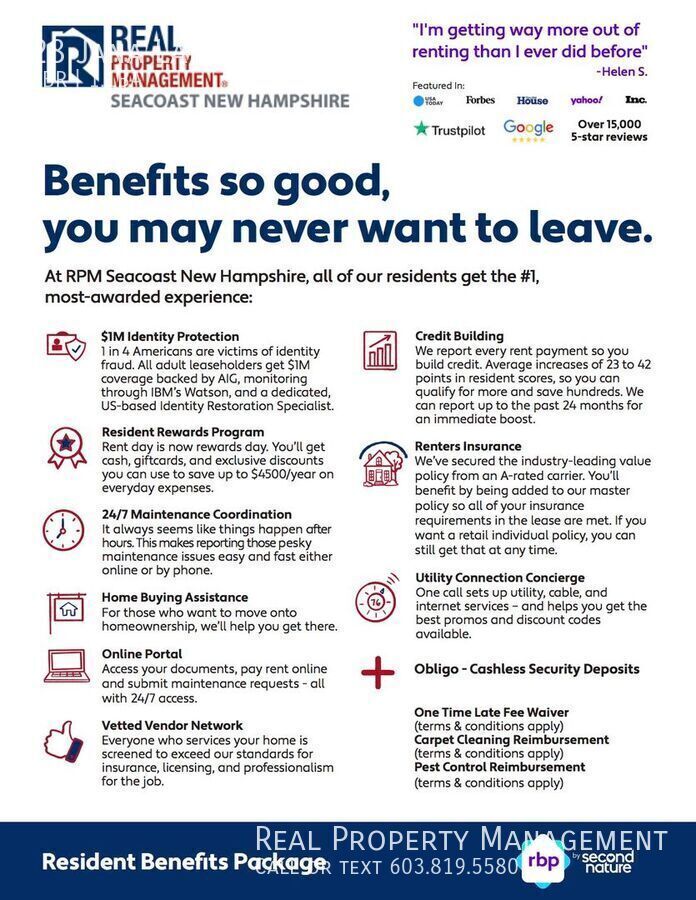 Introducing this charming 2BD end unit townhouse in Stratham, NH! This cozy home features a convenient dishwasher for easy clean-up, as well as a washer/dryer in unit for added convenience. The end unit location provides extra privacy, while the large shared yard offers plenty of outdoor space to enjoy. With 2 off-street parking spaces, you'll never have to worry about finding a spot. Don't miss out on this lovely townhouse apartment - schedule a tour today! -Tenants responsible for electric heat, electric and internet - Washer/Dryer in unit -Small storage room -Cats and Dogs 40 pounds and under with $50 rent increase/pet and one-time pet fee. - 2 Offstreet Parking Spaces $55 Rental Application Requirements: Good Credit, Clean Criminal Background, 3x monthly rent in gross income, good references. All Real Property Management Seacoast New Hampshire residents are enrolled in the Resident Benefits Package (RBP) for $35.95/month which includes renters insurance, credit building to help boost your credit score with timely rent payments, $1M Identity Protection, move-in concierge service making utility connection and home service setup a breeze during your move-in, our best-in-class resident rewards program, and much more! More details upon application