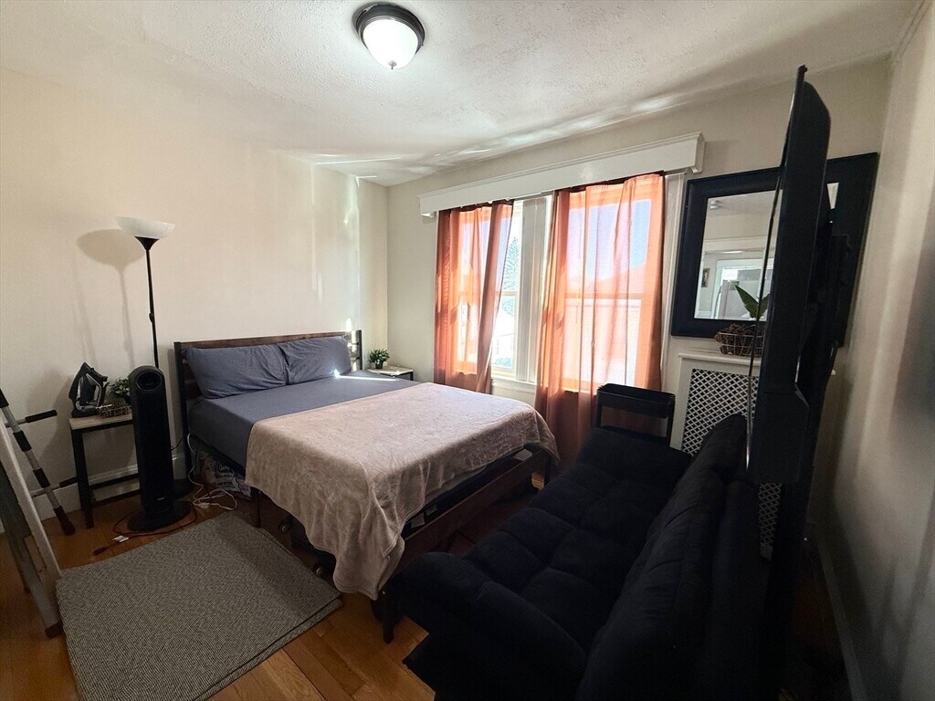 Charming second-floor two-bedroom apartment with exclusive use of a large driveway. The home is accessed through a private entryway and stairwell that leads up to the living room and kitchen. The living area is warm and inviting,complemented by hardwood floors that run throughout the unit. The kitchen provides direct access to both equally sized bedrooms,making the layout ideal for roommates or a flexible work-from-home setup. The bathroom is situated at the back of the home for added privacy. Additional highlights include in-unit laundry,a generous storage closet,and private front and rear porches; perfect for relaxing outdoors. Enjoy nearby shops,restaurants,public transportation,and only a short drive to the scenic hiking trails at Blue Hills Reservation. This rare find in the convenient Quincy Center location is available for 6/1 move in. MLS# 73480901
