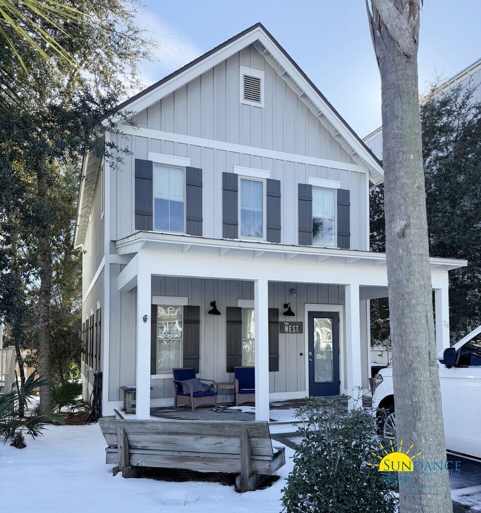 True to its name, this stunning fully furnished three-bedroom, three-and-a-half-bathroom home offers an exceptional living experience in the charming Serenity at Dune Allen community. Practically brand new, this luxury Florida cottage is designed for both comfort and style, nestled among lush greenery yet just moments from the pristine beaches of Scenic Highway 30A. Step inside to find light-filled interiors, elegant hardwood flooring, and high-end finishes throughout. The open-concept living space exudes coastal charm, with granite countertops, Kohler fixtures, and thoughtfully designed details that enhance the home’s modern appeal. A beautiful open staircase leads to three spacious bedrooms, each with a private ensuite bath and granite-topped vanities, ensuring ultimate privacy and convenience. Enjoy the best of indoor-outdoor living with a welcoming covered front porch and easy access to the community pool, just steps away. The brick-paved streets of this tranquil neighborhood create a picture-perfect setting, while the unbeatable location places you within walking distance of the white sandy beaches and all the dining, shopping, and recreation that 30A has to offer including scenic bike paths and top-rated golf courses. Lawn care is included. HOA rules and regulations apply. Washer and dryer provided. One Small pet considered with a non-refundable $250 per pet plus a $50 admin fee (subject to owner approval) No smoking is permitted. In addition to the rental amount, all Sundance Rental Management residents are enrolled in the Resident Benefits Package (RBP) for $25.00/month which includes liability insurance, credit building to help boost the resident’s credit score with timely rent payments, and much more! The benefits can be found on our website under Tenant FAQ.