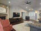 Overlooking the 14th fairway of Scotsdale Golf Course, this beautiful home is just waiting for you! A gorgeous corner fireplace draws your eye the moment you step through the front door. Through the living room or primary bedroom you have access to the spacious sunroom encased in windows with those lovely golf course views. Feeling hungry? Whip up a meal in the roomy kitchen featuring stainless steel appliances and granite counters. Split bedroom floor plan. The primary suite features a massive walk-in closet with window for lots of natural light, dual sink vanity, jetted soaking tub and separate walk-in shower. Large windows overlooking the back yard and golf course views cap off the primary suite. Two good sized guest bedrooms and full bath. *Available to rent furnished or unfurnished. *Owner to manage MLS# 1326163