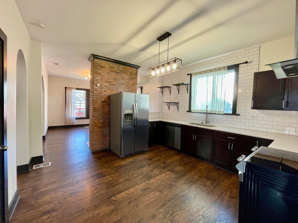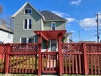 This beautifully renovated 3-bedroom,2-bath home blends original character with modern updates throughout. The main level features new flooring,exposed brick accents,and an open-concept kitchen with granite countertops and stainless steel appliances. The full bath showcases custom tilework from floor to ceiling. All three bedrooms are generously sized,and both bathrooms have been tastefully updated. A finished third-floor flex space provides over 300 additional square feet—perfect for an office,studio,or extra living area. Outside,enjoy a fully fenced yard,a large deck,and an oversized two-car garage.