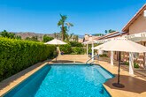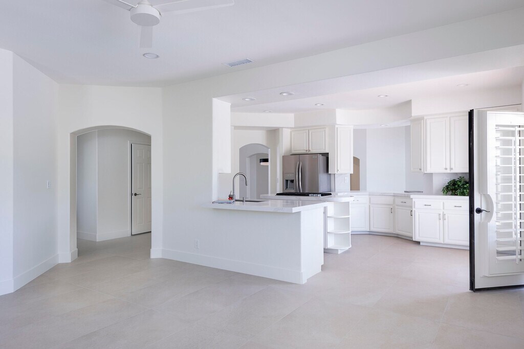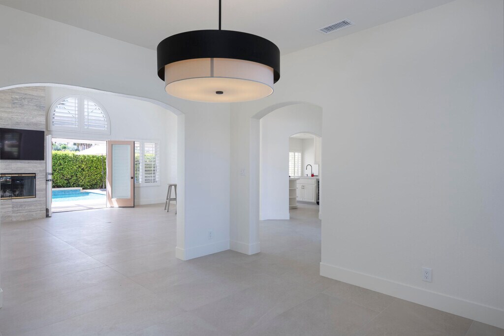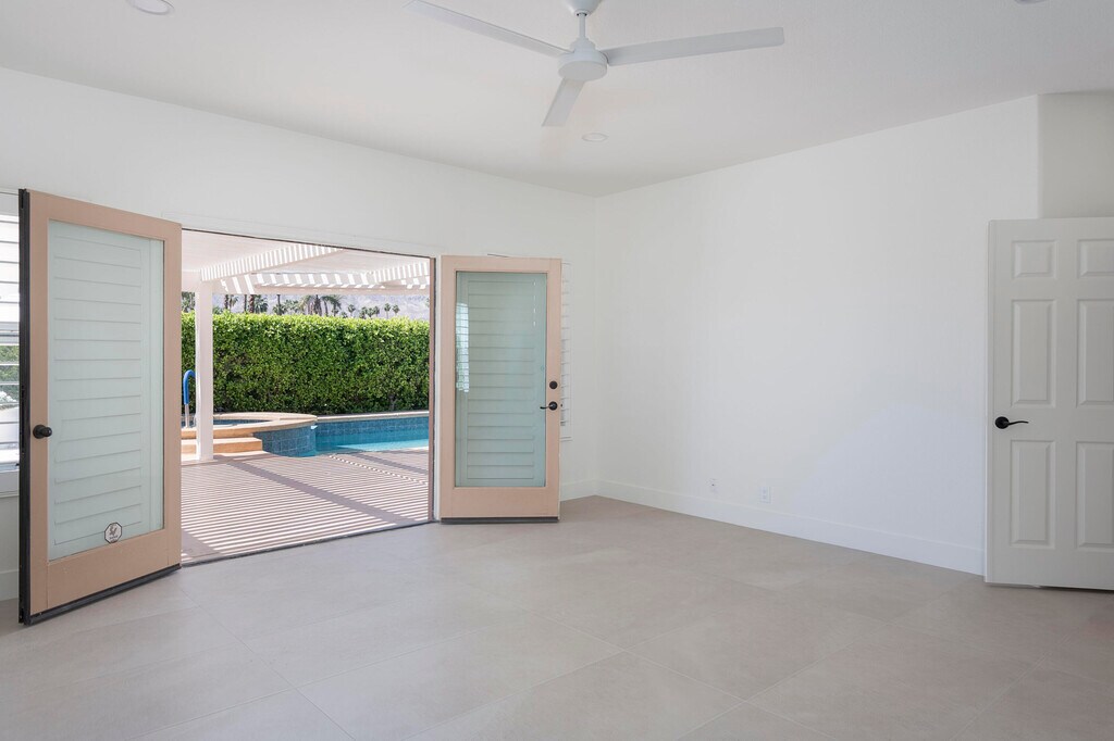 Discover breathtaking views in this stunning 2,598 sq. ft. home in the gated community of Park Mirage available for a long term lease. Situated close to the River Mall,next to Clancy Lane,and about 20 minutes from Palm Springs Airport,and close to the Desert's top shopping and dining,this 4 bedroom,4 bathroom residence offers luxury and convenience. The open floor plan,high ceilings,and large windows flood the home with natural light. The premium lot boasts a south-facing backyard with unobstructed views of the Santa Rosa Mountains. Enjoy a sparkling pool,spa,waterfall and fountain,with a wide community greenbelt,ensuring uninterrupted vistas. The kitchen,featuring an island,breakfast bar,and nook,opens to the great room,perfect for entertaining. A formal dining room and living room with a raised fireplace adding elegance. The primary suite with French doors to the pool,includes a spacious bath and walk-in closet. Three guest bedrooms and three additional baths offer ample living space. Recent upgrades include,freshly painted throughout,new pebble tech finishes in the pool,NEW Solar system & Air Conditioning unit installed,and newer stainless appliances. The home also includes an indoor laundry room and a 3 car garage with a NEW Telsa 3 Power Wall plug. HOA fees cover front yard maintenance,basic cable TV,gate access,roads,and the large community greenbelt (''Central Park''),offering a carefree lifestyle in a majestic setting. Call for a private showing.